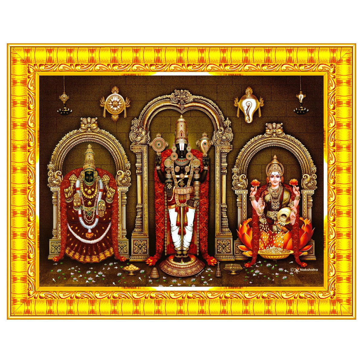 Pavan Photo Laminations Balaji Lakshmi Padmavati Venkateshwara Swamy Wall Painting Framed Home Decor (Wood,Matte,Gold,Big Size,1