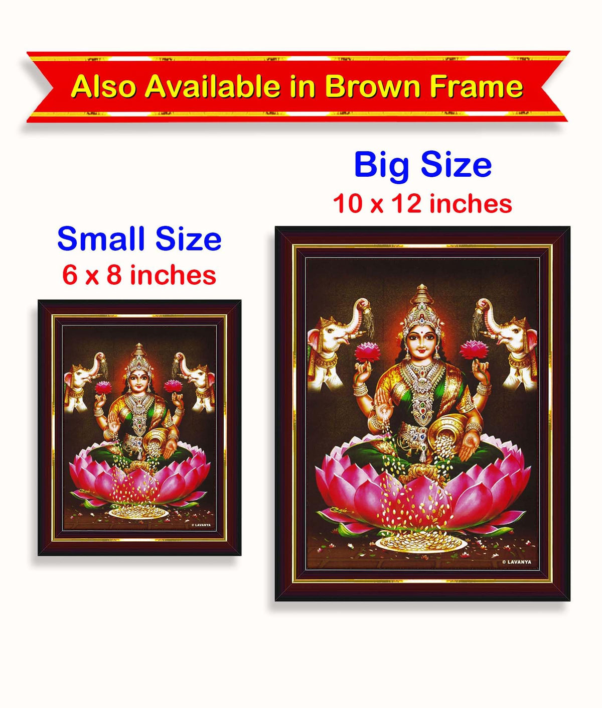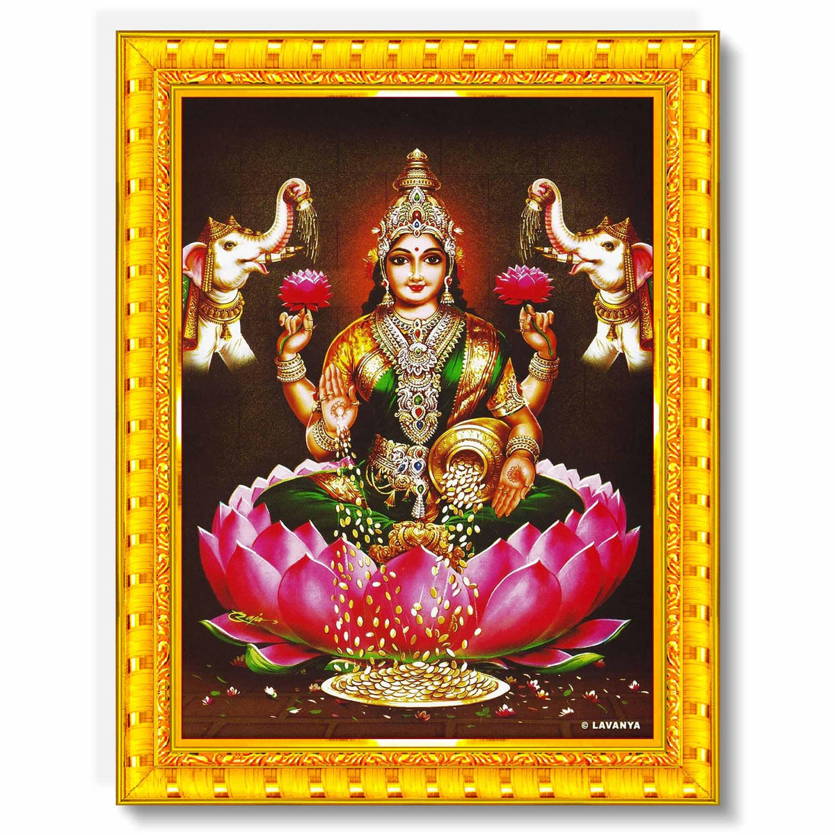 Pavan Photo Laminations Goddess Lakshmi Devi Dhana Vaibhav Laxmi Maa Wall Painting Framed Home Decor (Wood,Matte,Gold,Big Size,1