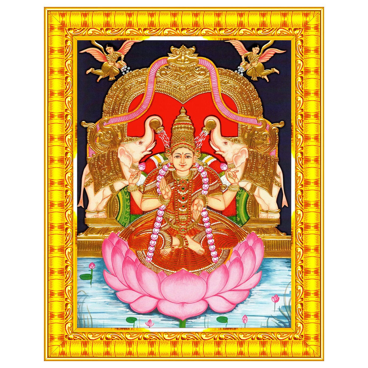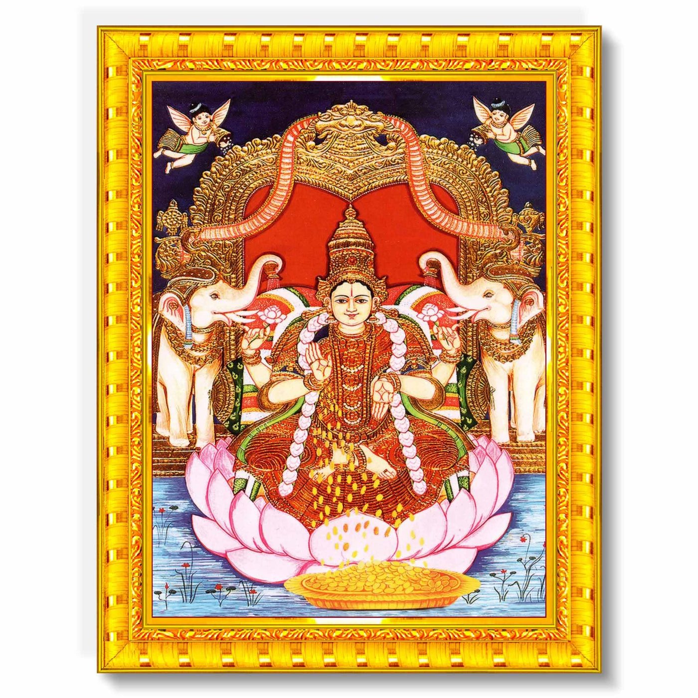 Pavan Photo Laminations Goddess Lakshmi Devi Vaibhav Laxmi Tanjore Wall Painting Framed Home Decor (Wood,Matte,Gold,Small Size,6