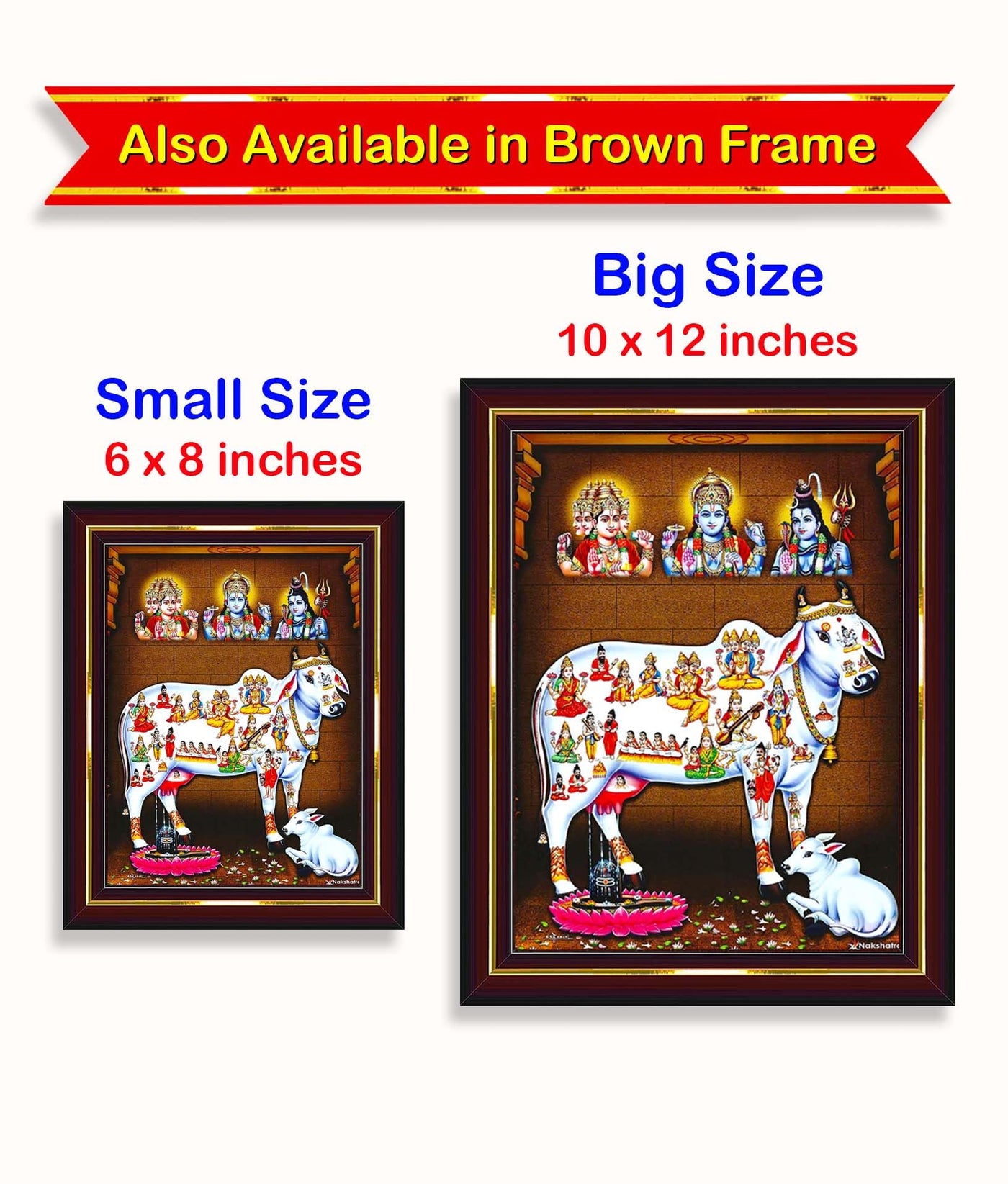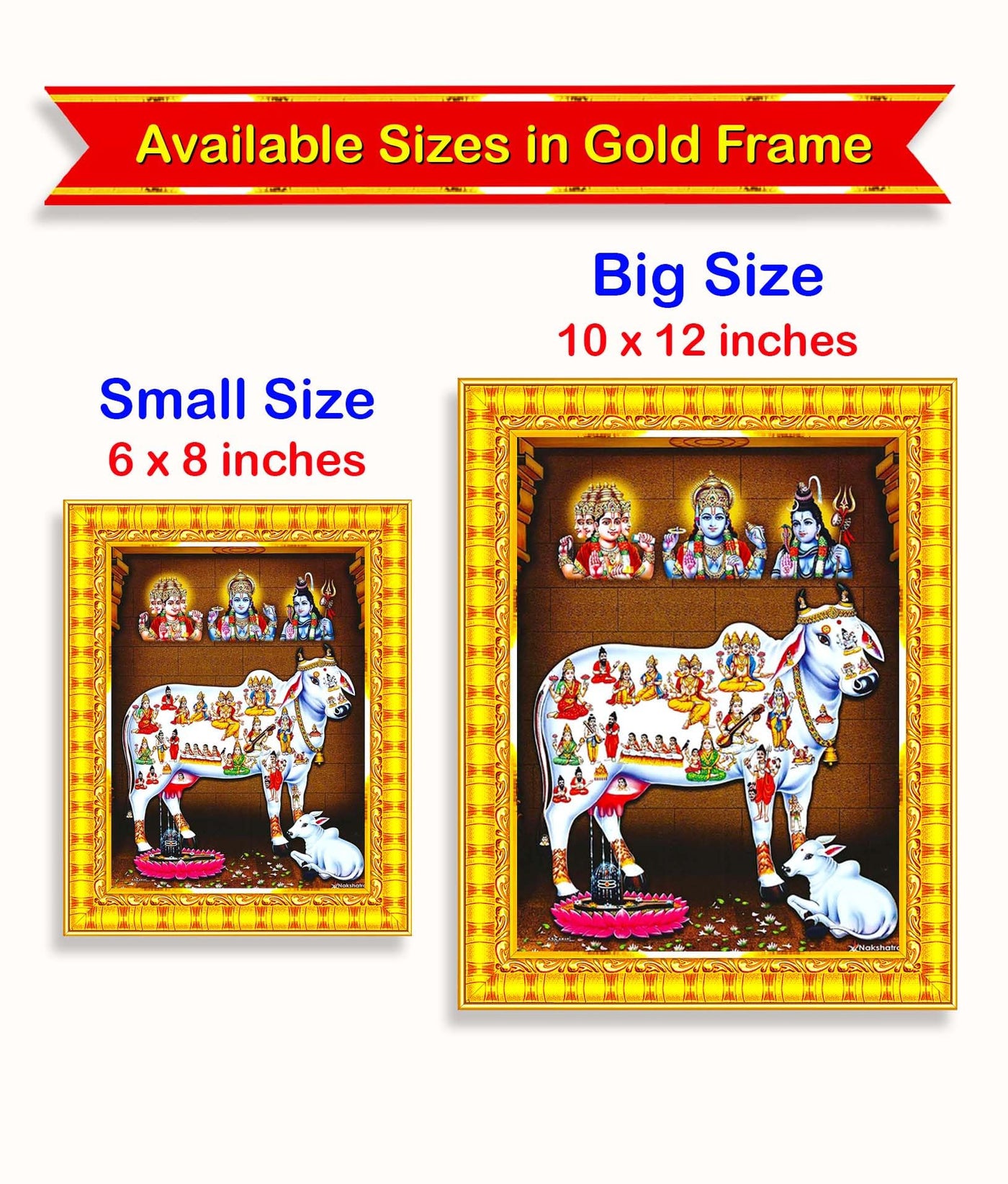 Pavan Photo Laminations Gomatha Gomata Komatha Cow And Calf Kamdhenu Wall Painting Framed Home Decor (Wood,Matte,Gold,Big Size,1