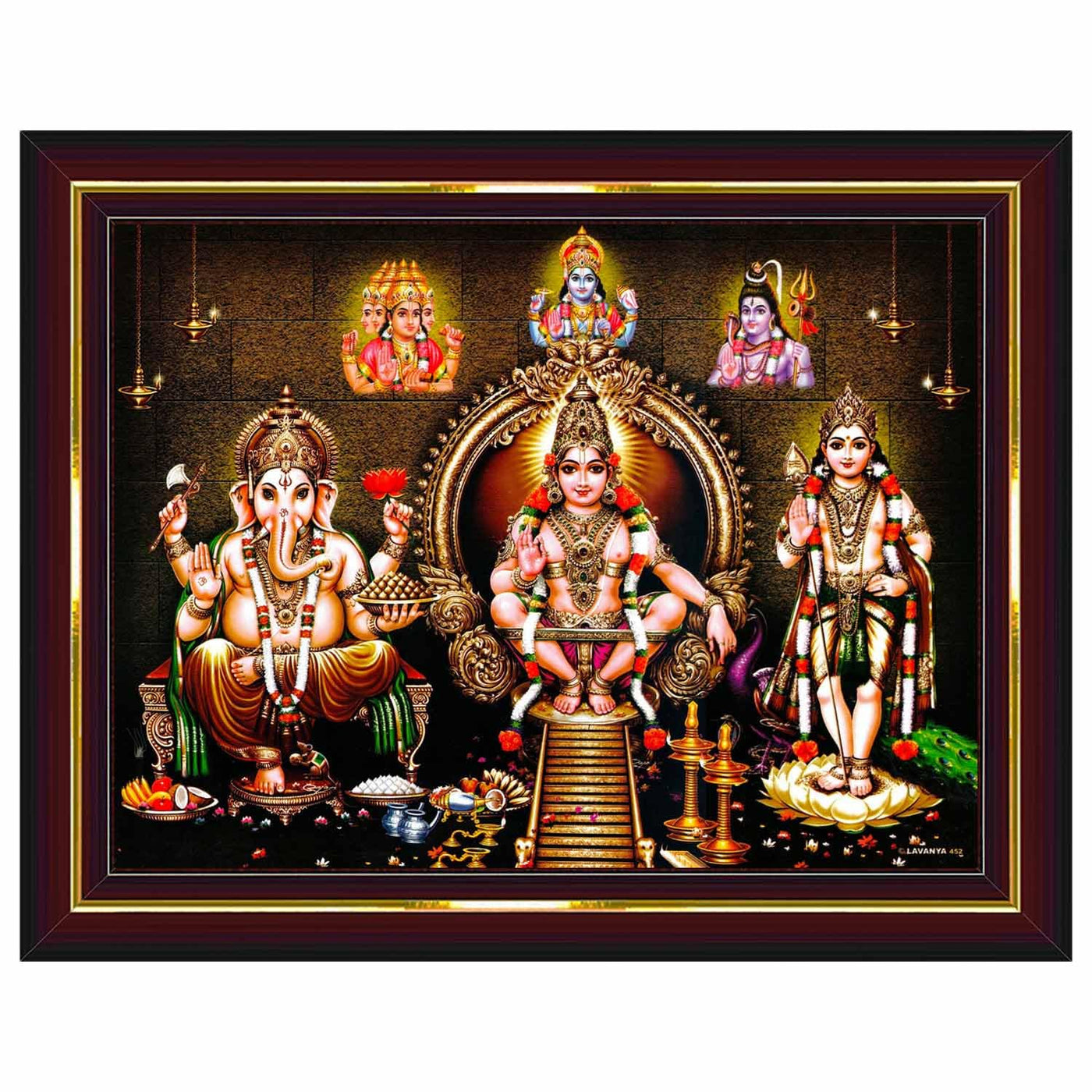 Pavan Photo Laminations Lord Ayyappa Swamy Ganesha Ganesh Murugan Wall Painting Framed Home Decor (Wood,Matte,Brown,Small Size,6