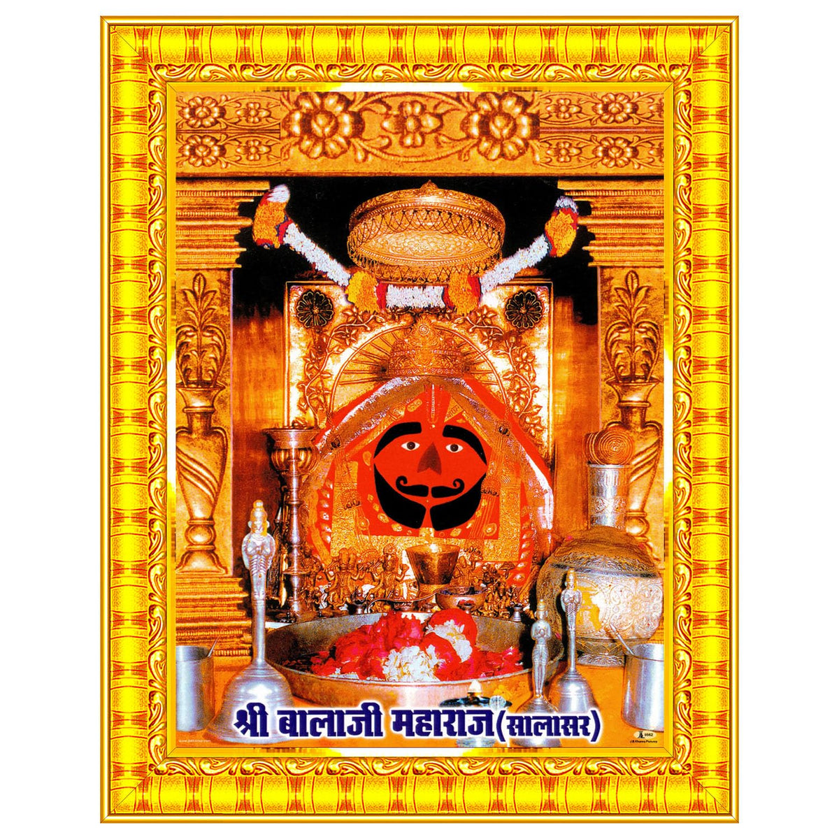 Pavan Photo Laminations Salasar Balaji Maharaj Hanuman Ji Hanumanji Wall Painting Framed Home Decor (Wood,Matte,Gold,Small Size,