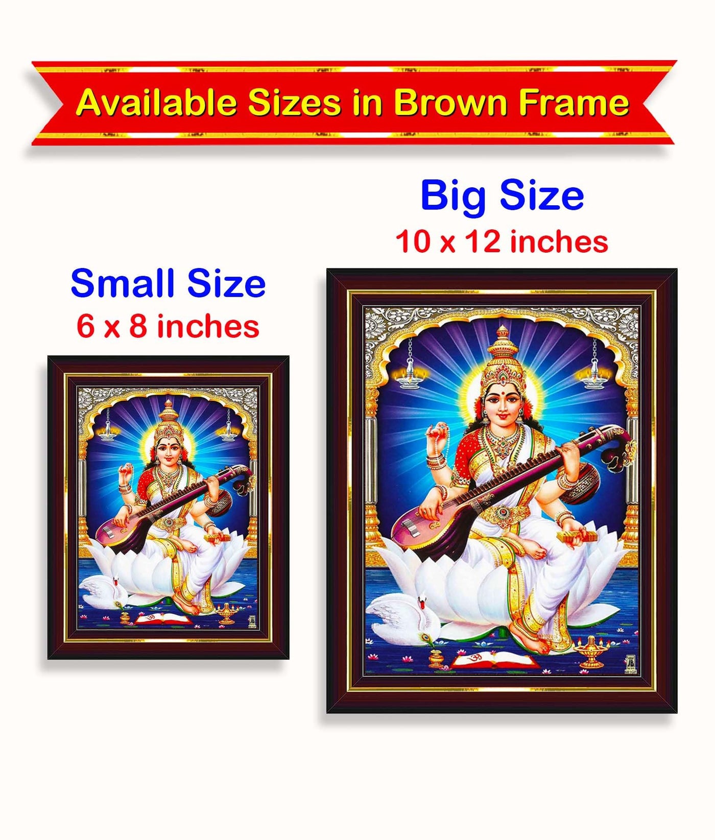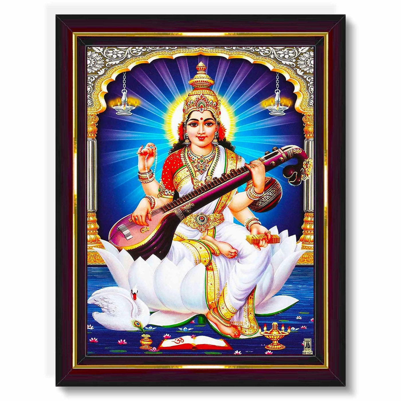 Pavan Photo Laminations Saraswati Devi Goddess Saraswathi Maa Wall Painting Framed Home Decor (Wood,Matte,Brown,Big Size,10 X 12