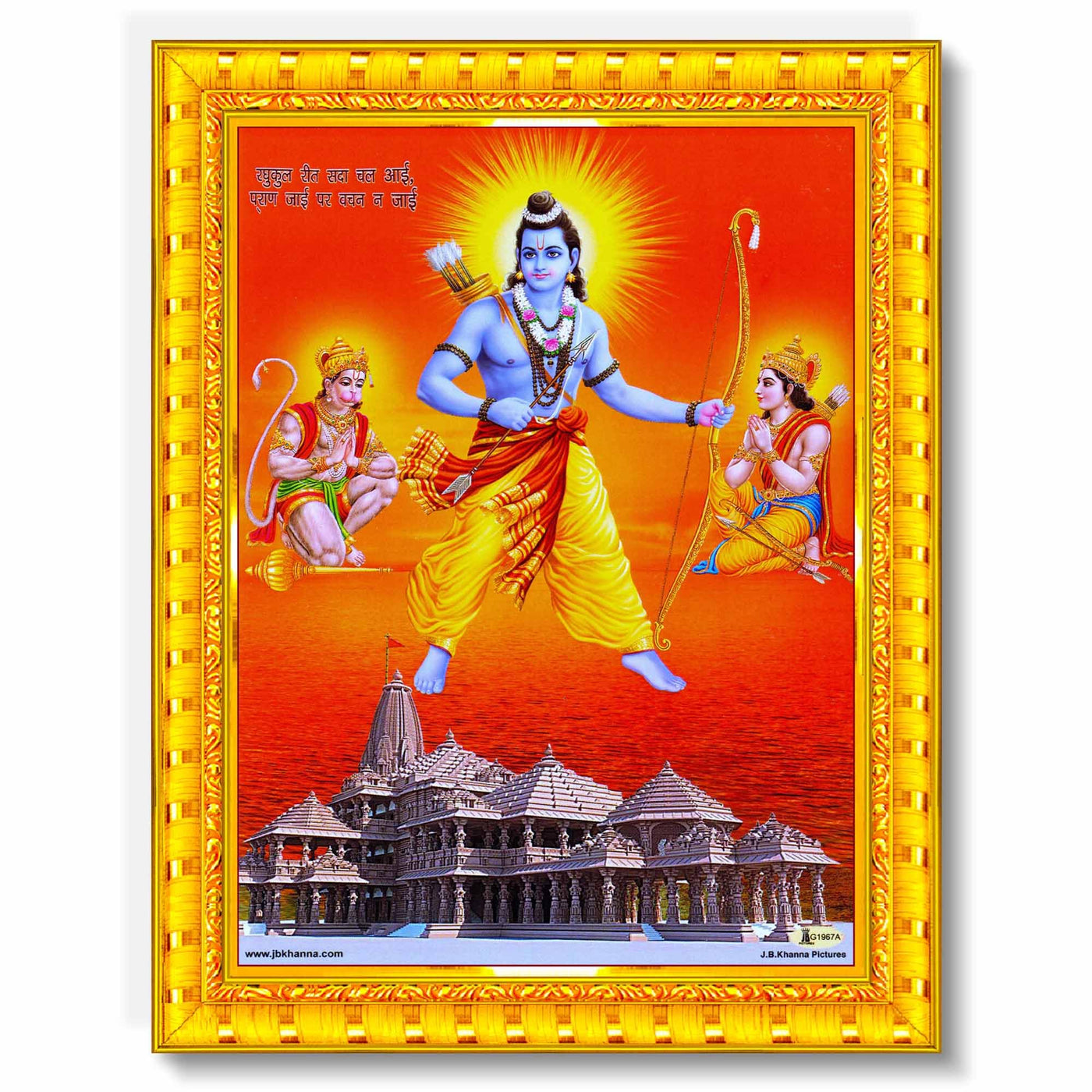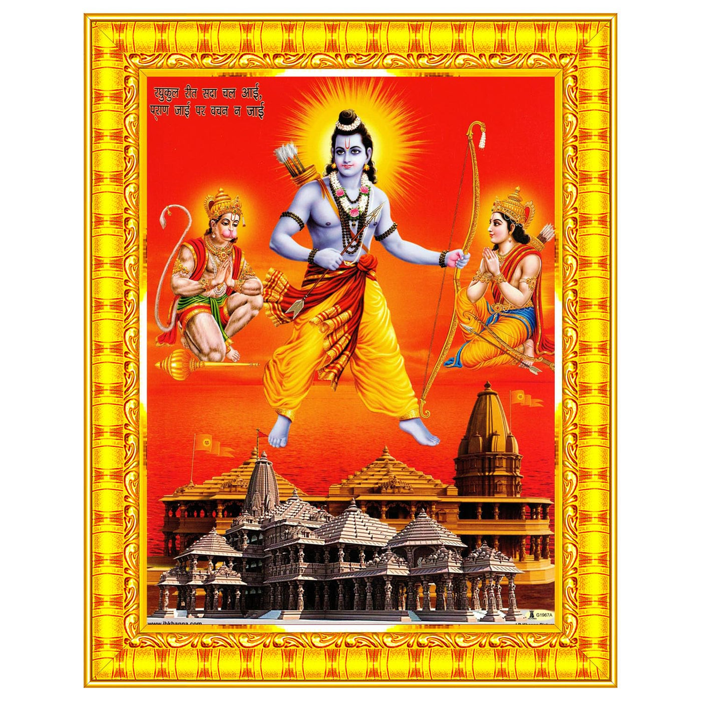 Pavan Photo Laminations Shri Ram Lord Sri Rama Ji Ramudu Ramar Sriram Wall Painting Framed Home Decor (Wood,Matte,Gold,Small Siz