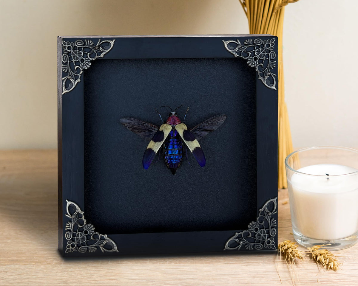 ?FRAMED ART: This listing is a Real Blue Jewel Beetle Frame from Vietnam. We make this handmade shadow box with a real dried dead butterfly and keep it well to retain its shape and color it in its natural state. ?FRAME SIZE: 5.5 x 5.5 x 0.8 inch (= 14 x 14 x 2 cm). The frame was made of pine wood covered by 3 layers of paint coming with a special acrylic on the front to give a clear view, 4 brass baroque corner protectors in the corner, and a hanger hook on the back and ready to hang. ?UNIQUE GIFT AND HOME DECOR: These Jewel Beetle Frame Art collections make great gifts for those you love, including yourself. Send sweet words to those who deserve it. This is not only a meaningful gift but also an affirmation of the strength of your relationship. These frames can be used to display in most places in the house from the living room to the bedroom, from the table to the shelf. They can be hung on the wall or placed on a horizontal surface. ?PRODUCT CHARACTERISTICS: Please keep in mind that these insects are natural products so they may have slight scratches or small quirks. The shape and color of the insects may vary from the pictures since its natural. ?ENSURE DELIVERY : We always strive to bring you the best products and experiences. Each of our products will be packed with the loving care of our staff, so it can be delivered in the same condition as you ordered. If you have any problems, please do not hesitate to contact us.