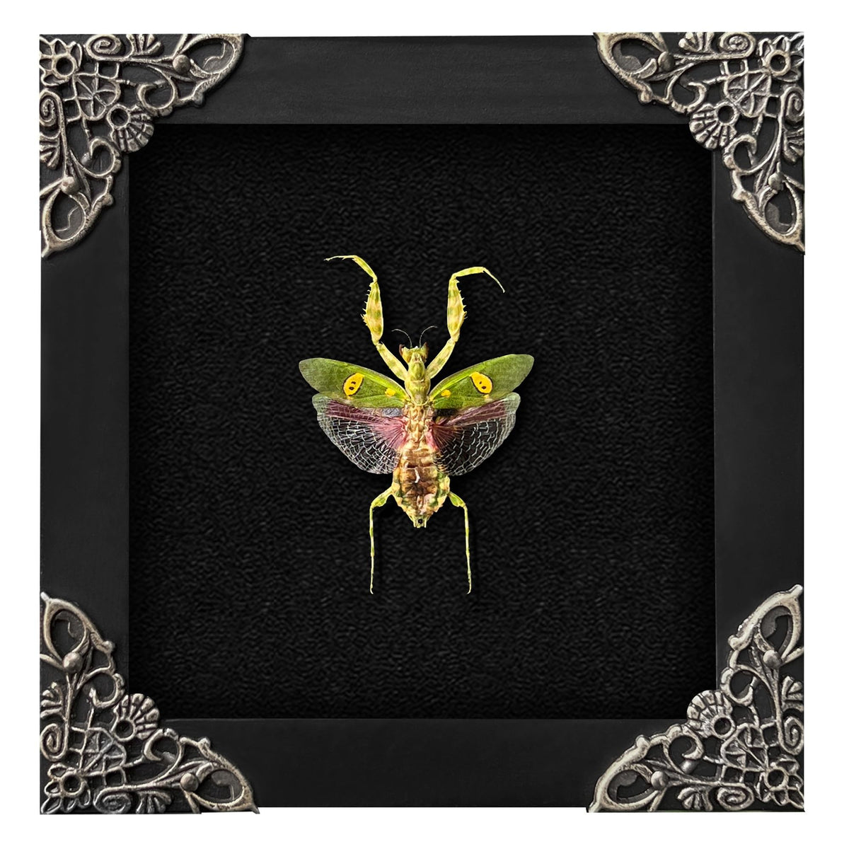 Real Framed Flower Mantis Dead Insect Dried Green Beetle Shadow Box Black Frame Taxidermy Bug Specimen Display Oddity Tabletop S