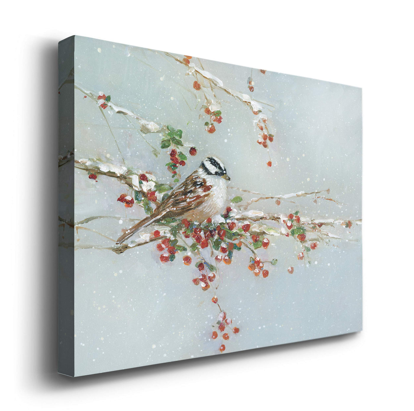 Renditions Gallery Canvas Abstract Wall Art Home Paintings & Prints Artwork Innocent Winter Woodpecker Glam Wall Hanging Snowy Modern Decorations for Bedroom Office Kitchen - 8''x12'' LT20