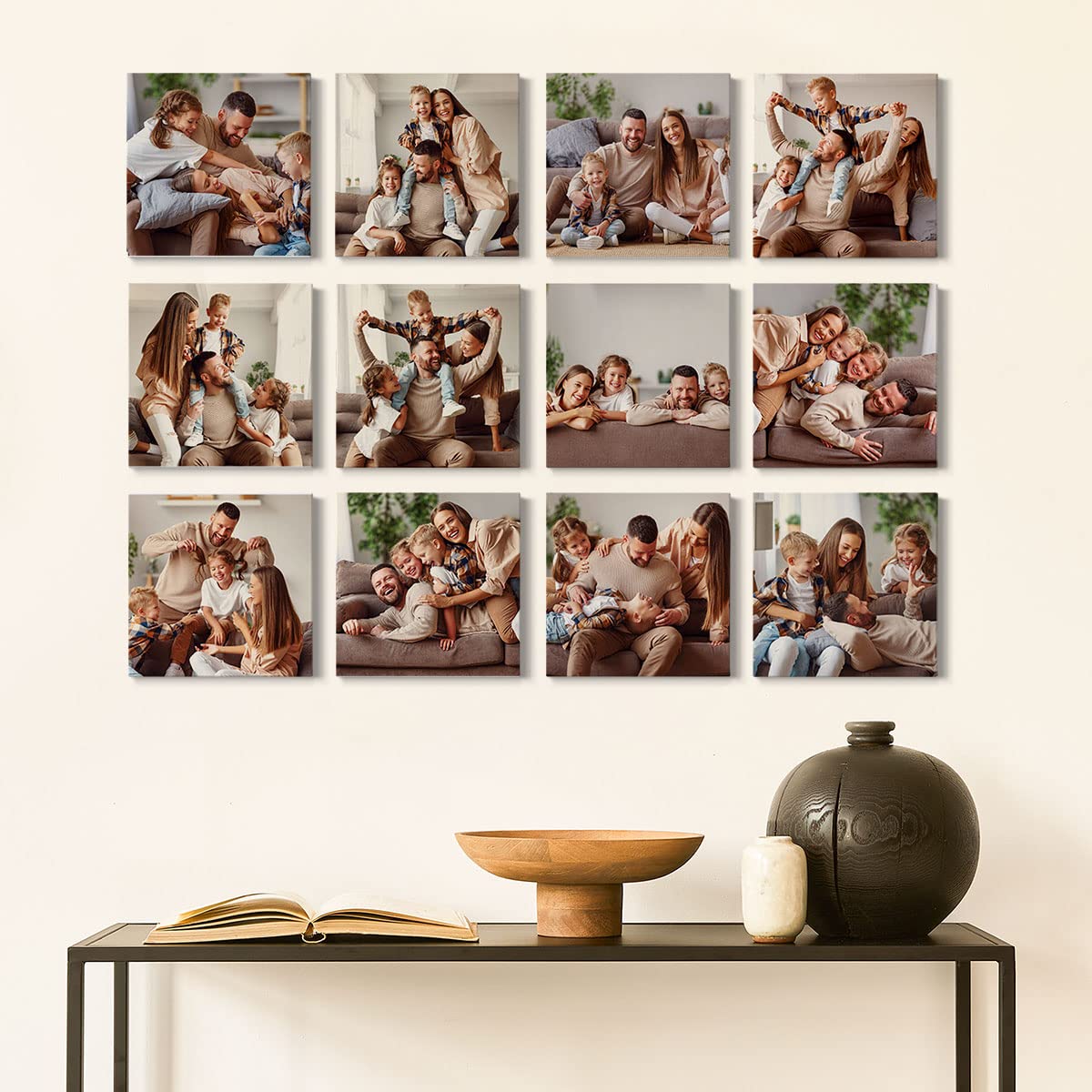 Renditions Gallery Set of 12 8x8 Custom Photo Canvas Prints with Solid Wood. Create Personalized Photos Picture Collage with Peel and Stick Photo Frames for Home and Office. Wrapped Canvas