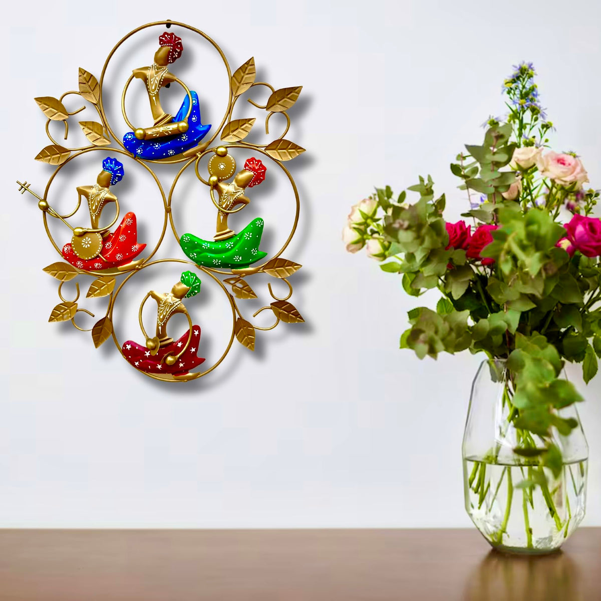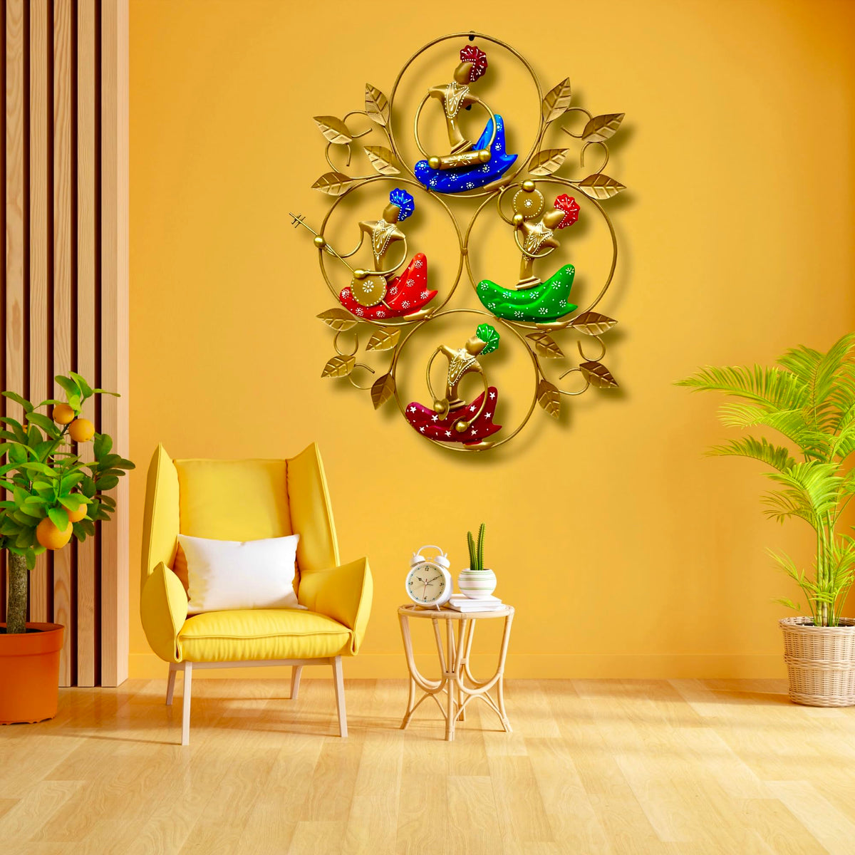 Rsn Wall Decor Metal Beautiful 4 Dolls Musicians Wall Art For Living Room/Home Size - 24 * 17 Inch - Multicolour