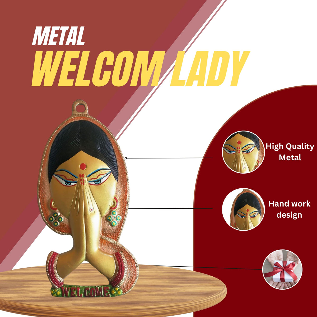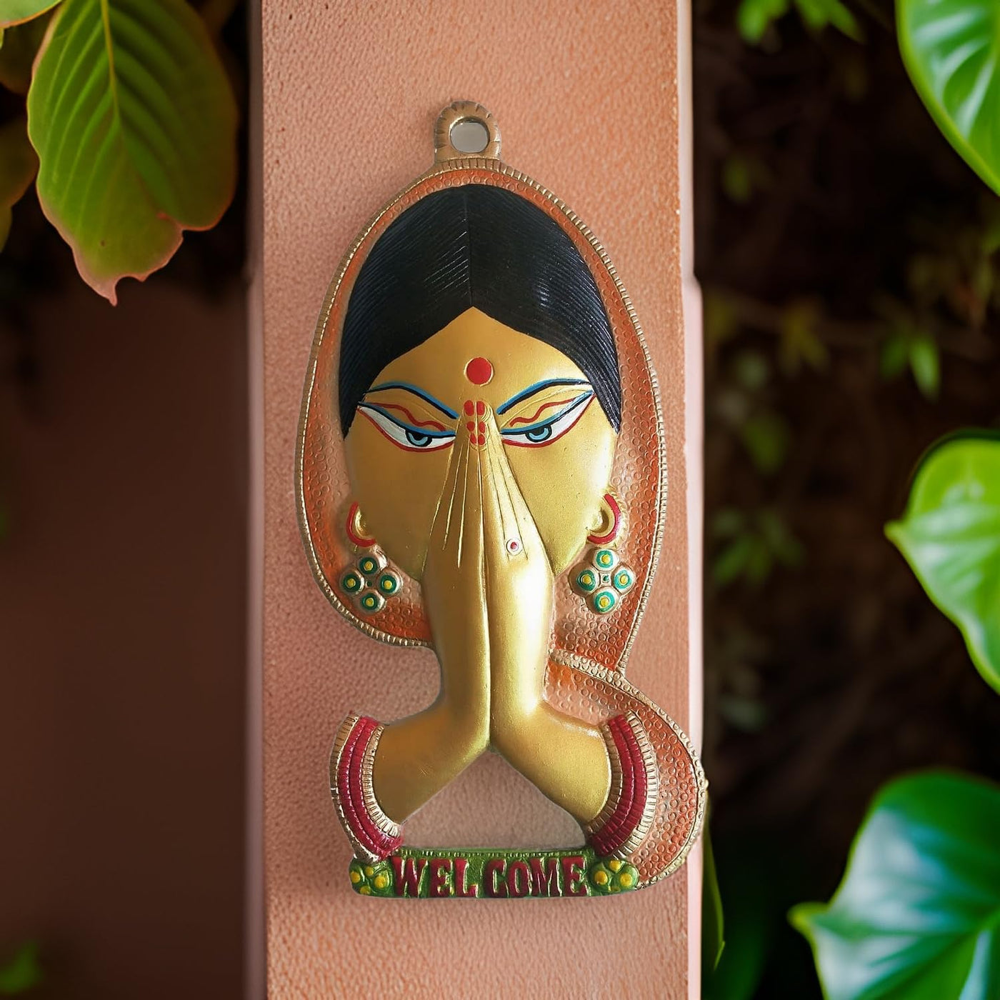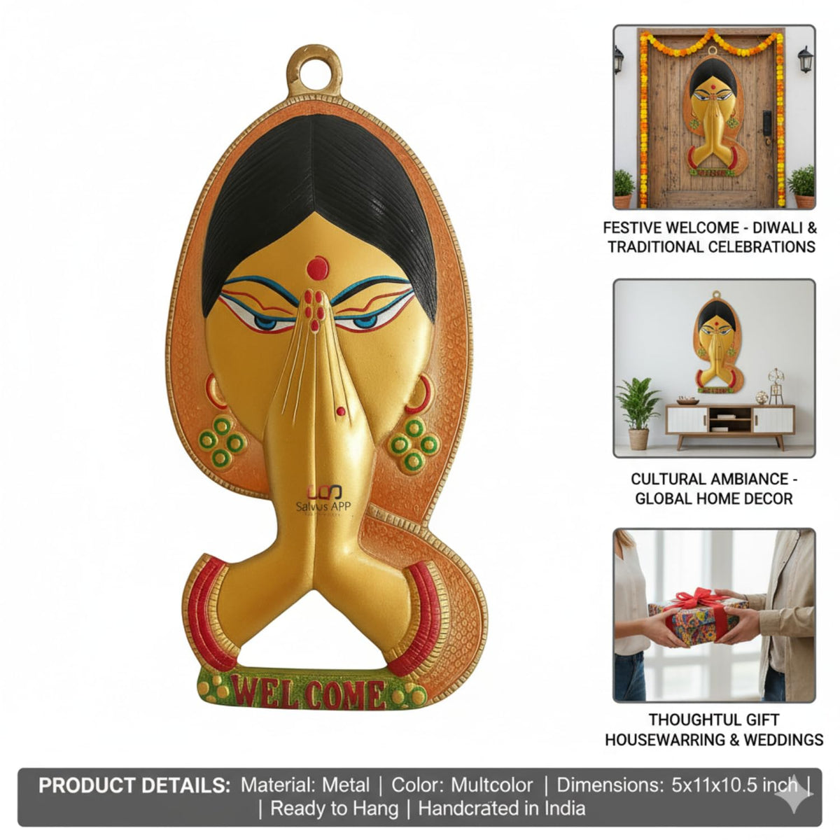 Salvus App Solutions Traditional Indian Namaste Lady Wall Hanging - Elegant Welcome Sign For Home Entrance, Vibrant Hand-Painted
