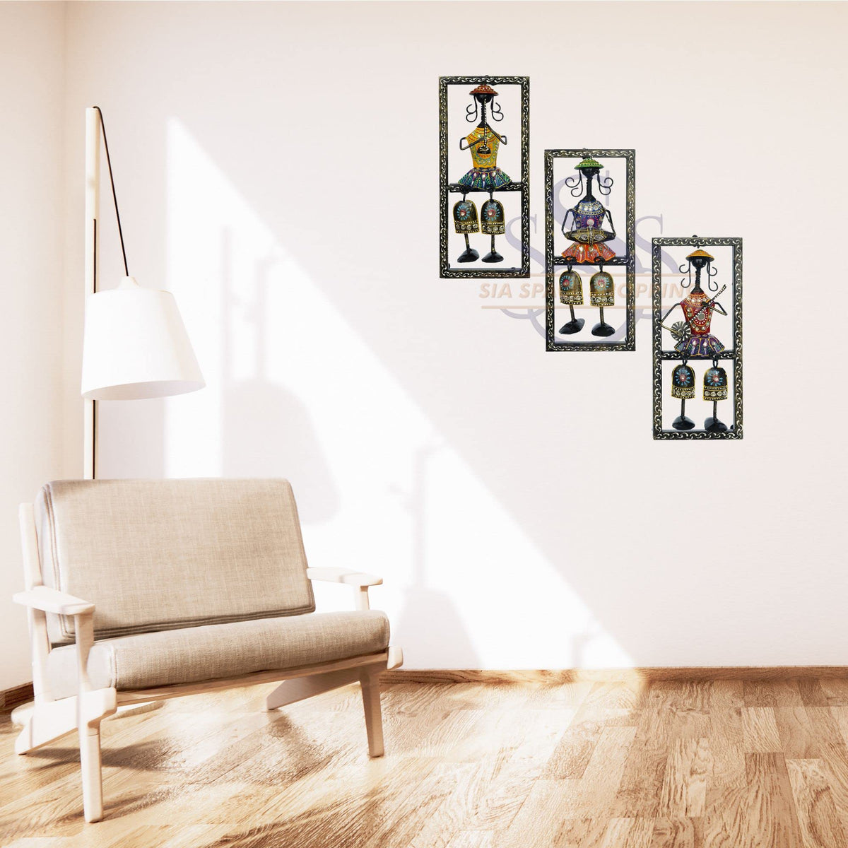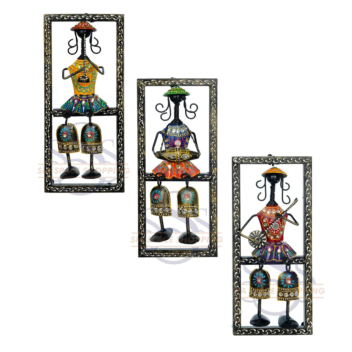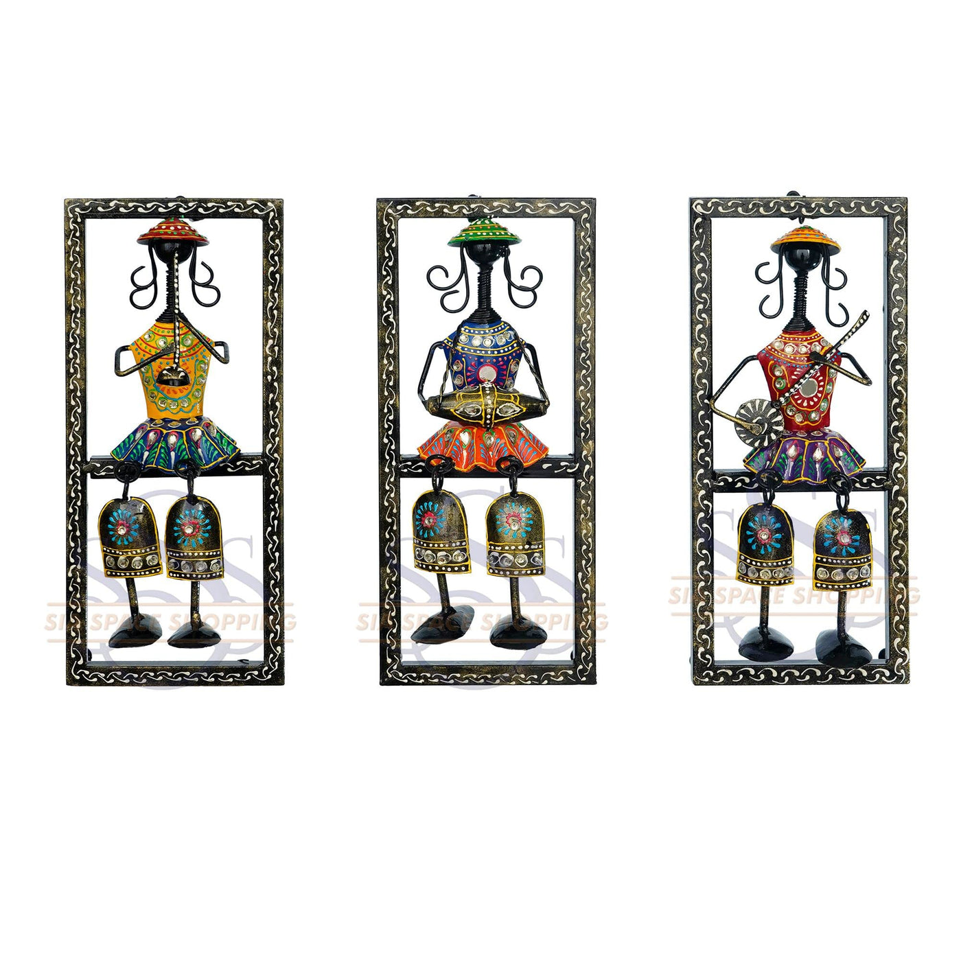Sia Space Shopping Meatal Antique Finish With Kundan Work Decor Wall Hanging/ Mounted Framed Set Of 3 Rajasthani Musician With Dancing Legs Playing Musical Instrument
