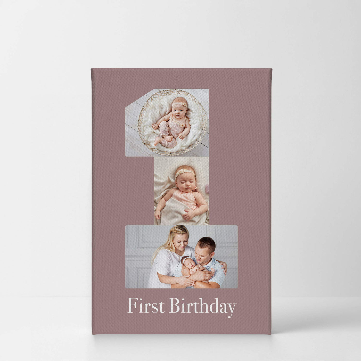 Smile Art Design Custom Photo Print Canvas Print with Your Photos Personalized Photo Upload 3 Images Collage Picture Personalized Gifts for 1 Year Old Baby Girl and Boy First Birthday - 17x11 inches