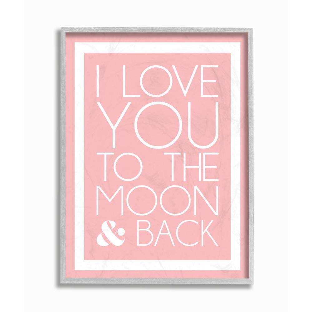 Stupell Industries I Love You To The Moon And Back On Pink With White Border Grey Framed Wall Art, 16 X 20, Design By Artist Lul