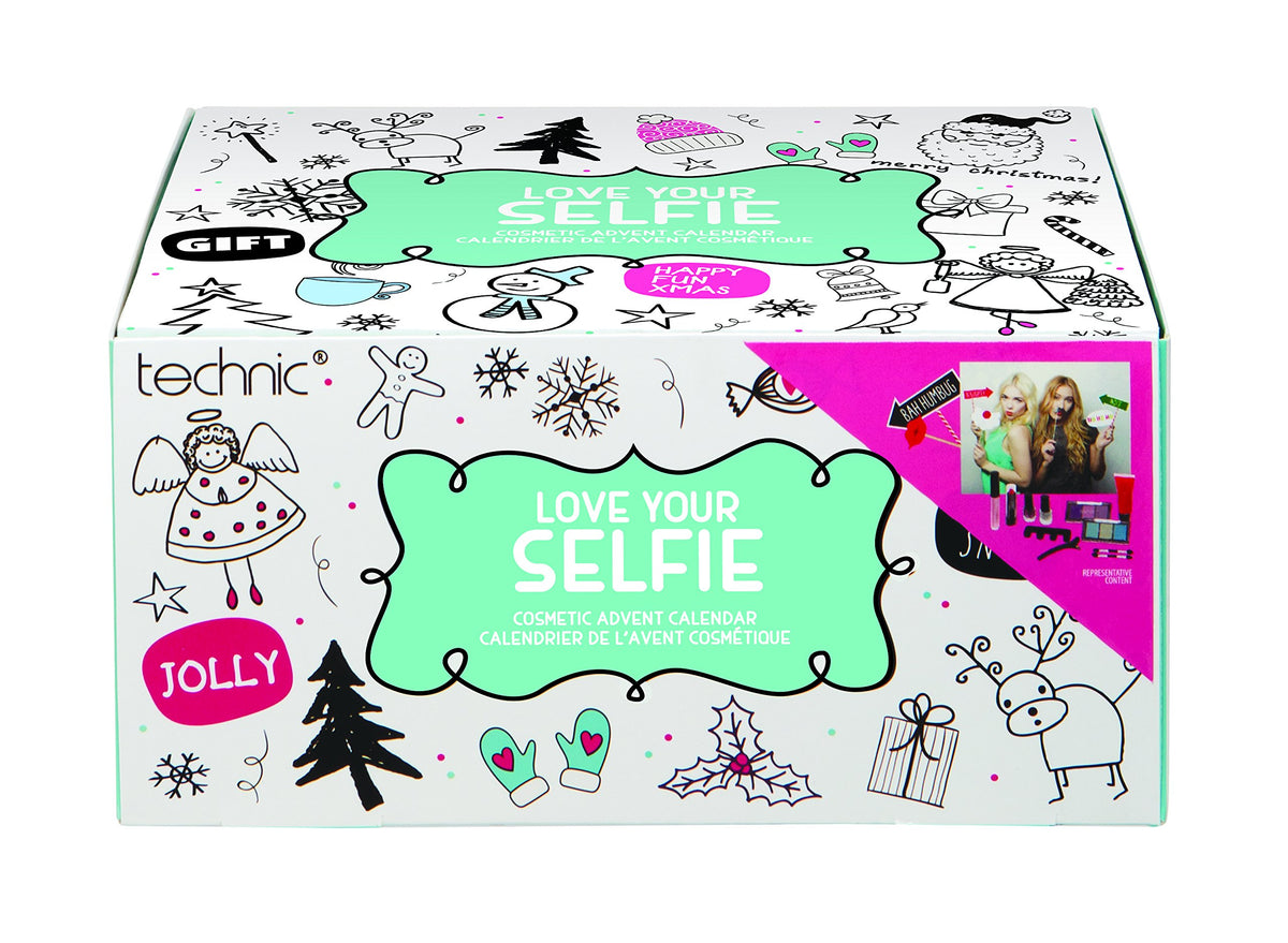 Technic Love your Selfie Cosmetic Advent Calendar. The perfect advent for any selfie queen. Prep yourself with 24 beauty faves and then strike a pose with the props.