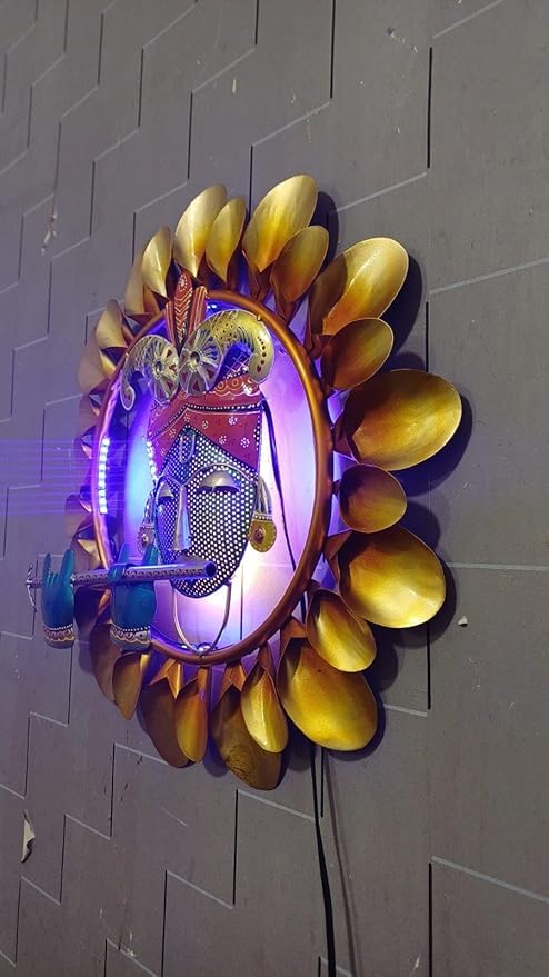 The Handicraft Store, Krishna Playing Flute Metal Wall Hanging Sculpture for Living room, Bedroom, Dining room, Home & Office Si