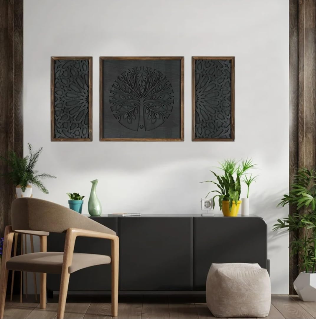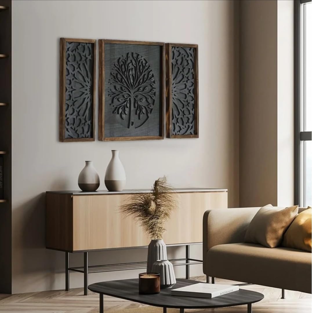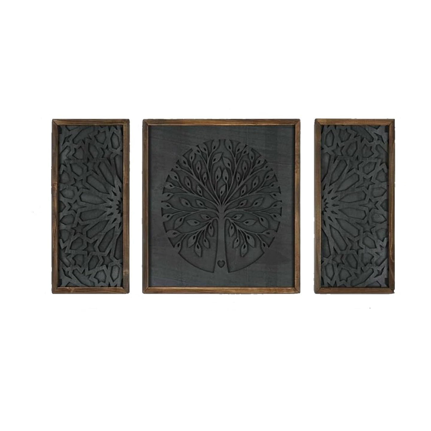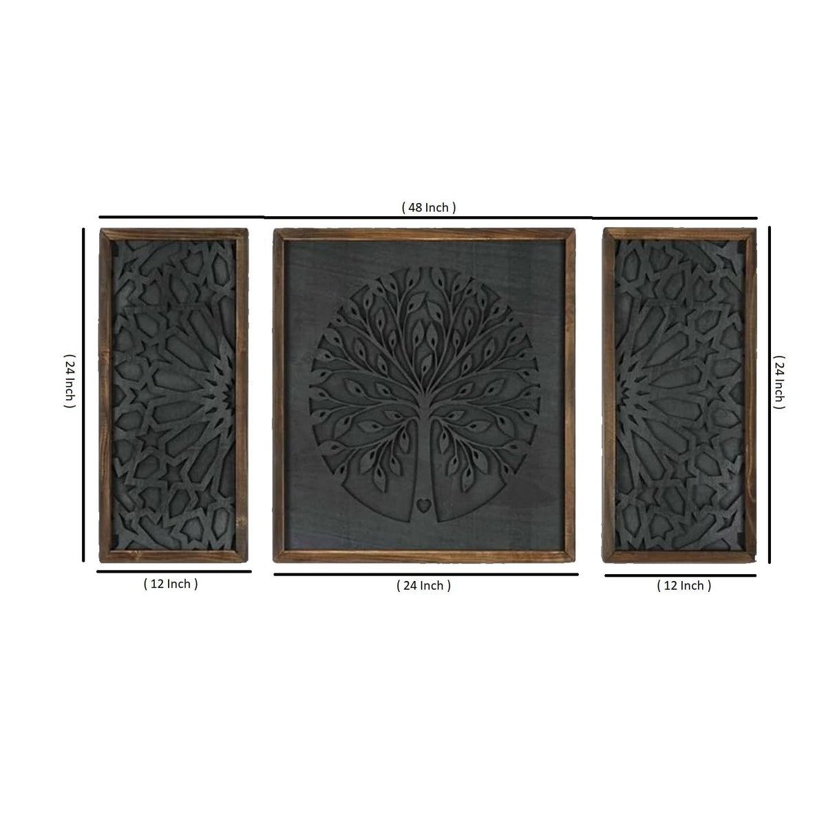 Upzing Decor Life Tree Wooden Set Of 3 Life Tree Wooden Wall Panel Set 3 Wall Hangings,Bedroom Carving Panel Aesthetic Style, Ma