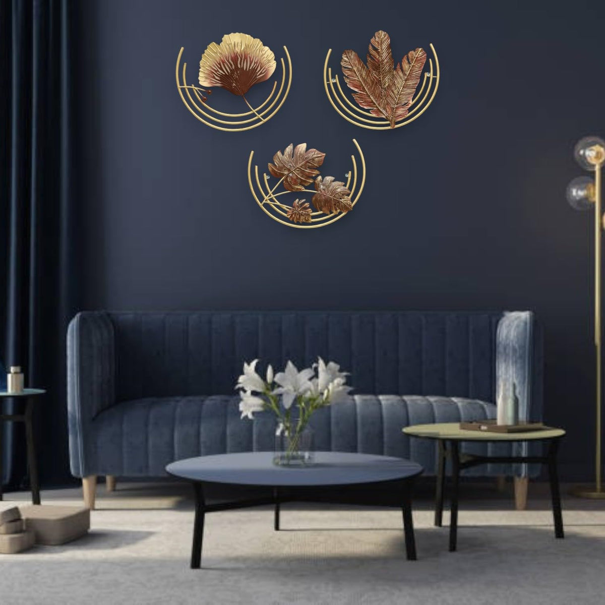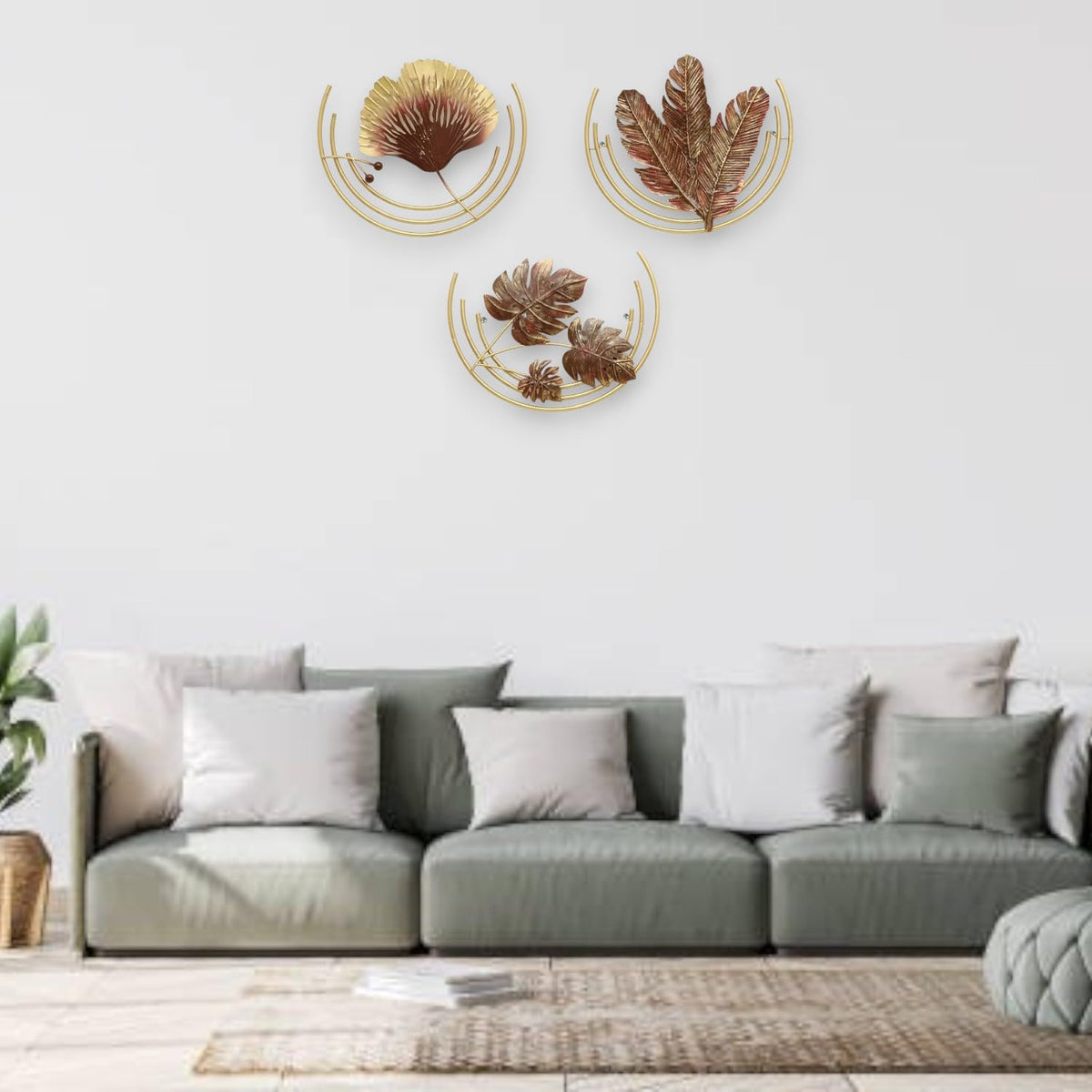 This Exquisite Metal Wall Hanging Sculpture Is A Captivating Blend Of Modern And Traditional Indian Aesthetics. Crafted With Precision, The Golden Arched Frame Elegantly Showcases Three Vibrant Metallic Leaves In Rich Burgundy Hues, Reminiscent Of The Lush Foliage Found In The Indian Subcontinent. The Intricate Detailing On The Leaves Adds Depth And Texture, Creating A Mesmerizing Visual Display. Measuring 18 X 15 Inches (Set Of 3), This Piece Is A Perfect Addition To Any Living Room, Bedroom, Dining Area, Kitchen, Bathroom, Or Entryway, Instantly Elevating The Ambiance With Its Artistic Charm. Whether YouRe Seeking A Touch Of Cultural Flair Or A Statement Piece To Complement Your Decor, This Wall Hanging Sculpture Is A Timeless Investment That Will Captivate Your Guests And Provide A Focal Point For Admiration.