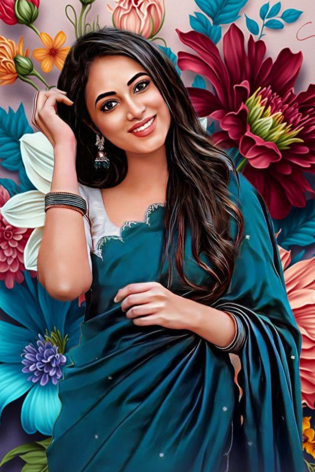 Vsk Sketch Art Customised Digital Oil Painting Colorfull Background | Gift For - Anniversary | Birthday | Wife | Husband | Siste