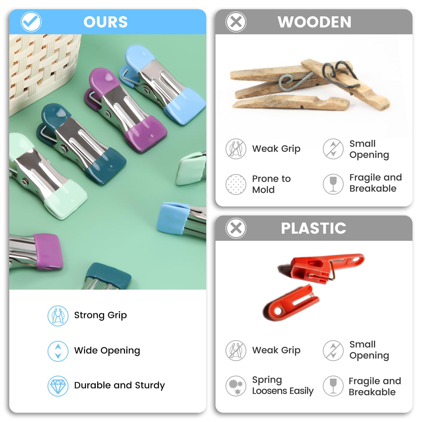 - Q: What makes these clips eco-friendly? A: These clips support sustainability by allowing you to air-dry clothes naturally, reducing energy costs and extending the life of your fabrics.