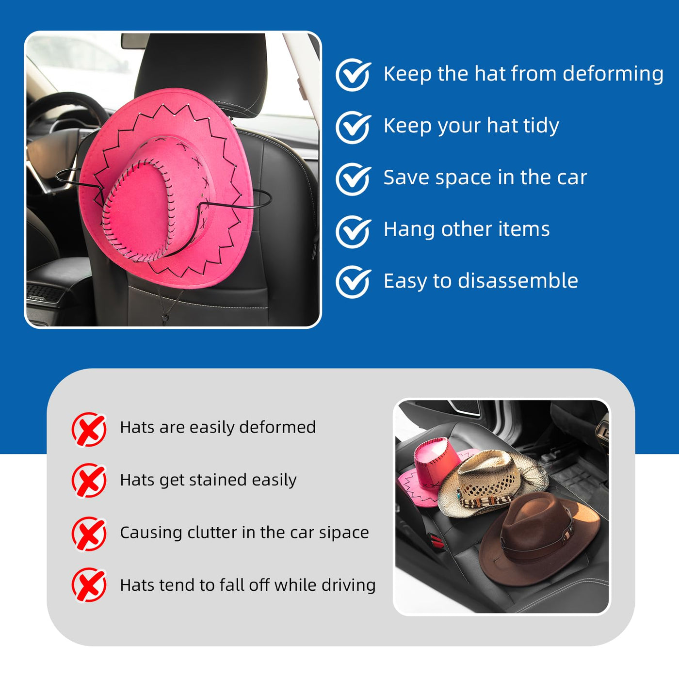 • Q: Can this hat holder fit any type of vehicle? A: Yes, the hat holder is suitable for SUVs, pickup trucks, and any car with a seat headrest.