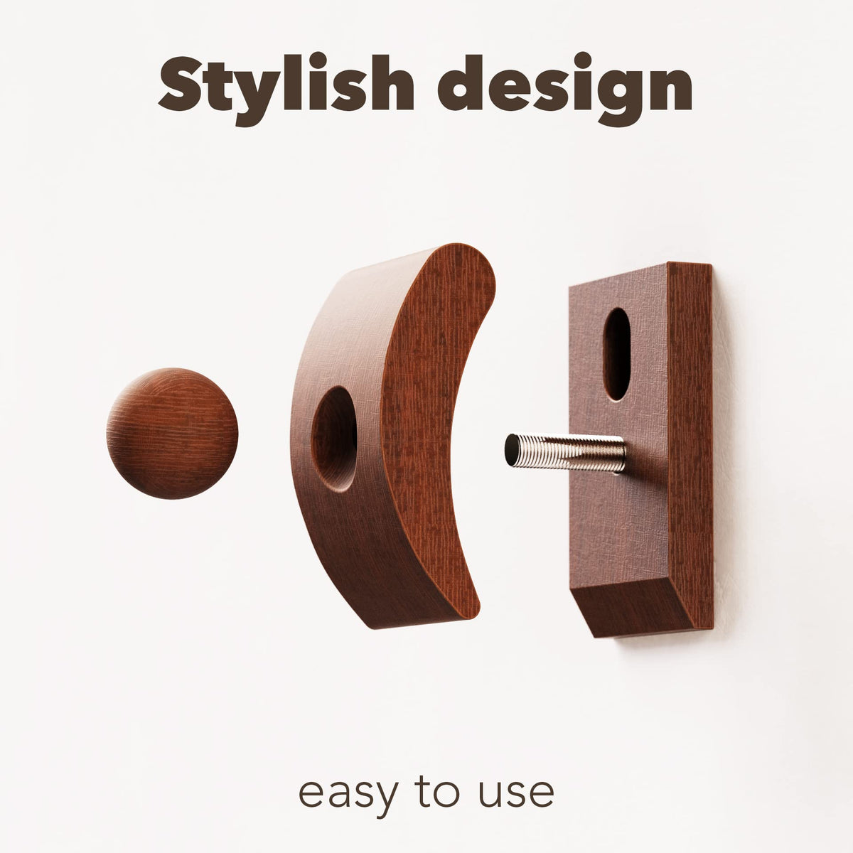 Crebri Brown Tapestry Hangers - 4 Small Wooden Quilt Hanger Clips for Wall Hangings, Blanket & Rug Display