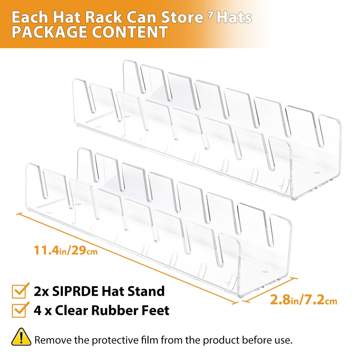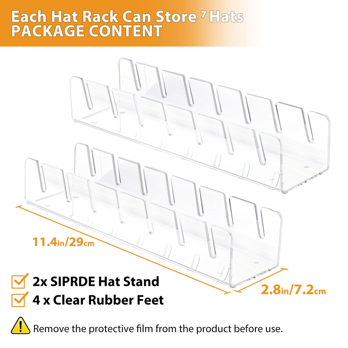 2Pcs Hat Stand For Baseball Caps, No Install Acrylic Hat Organizer For 14 Baseball Caps, Hat Racks For Baseball Caps Display Hat