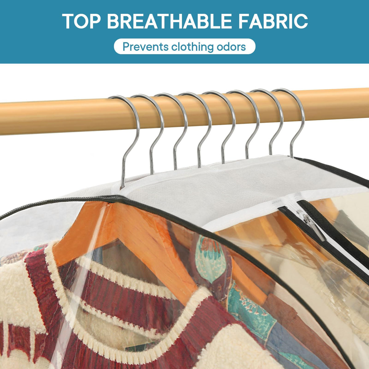 • Q: Are these garment bags reusable? A: Yes, the PEVA material is durable and designed for repeated use, making these garment bags a sustainable storage solution.