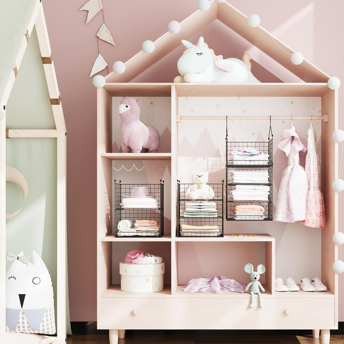 - Q: Can I use the organizer on a closet board or table? A: Yes, when not using the hanging feature, you can place the baskets directly on a closet board or table for added convenience.