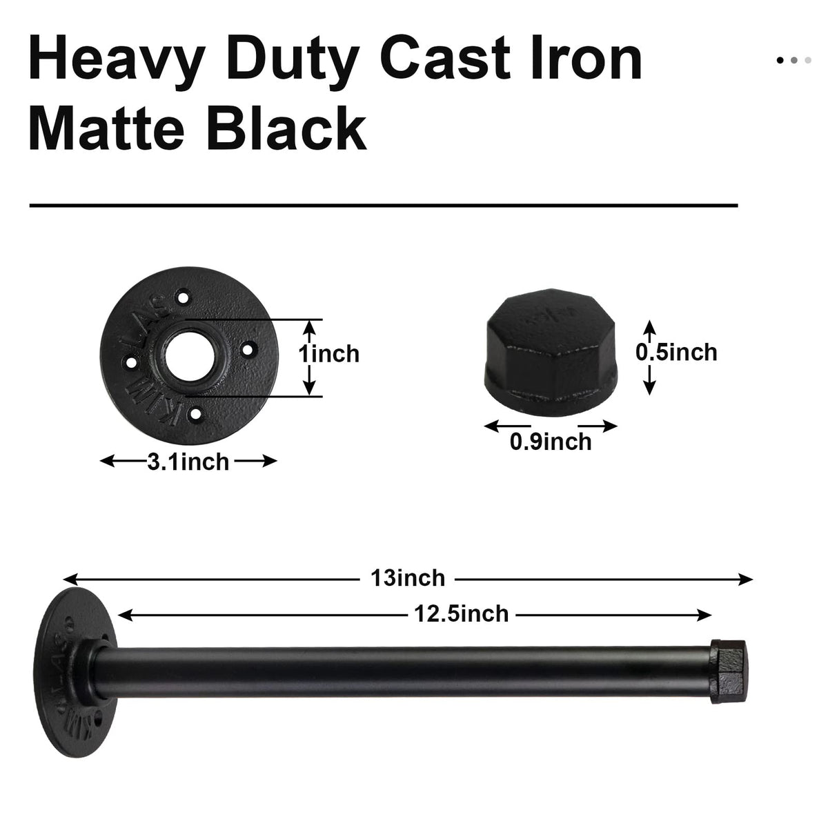 6 Pcs 12 Inch Industrial Pipe Clothes Bar, Pipe Clothing Rack For Hanging Clothes, Wall Mounted Clothes Rack, Wall Clothes Rods,