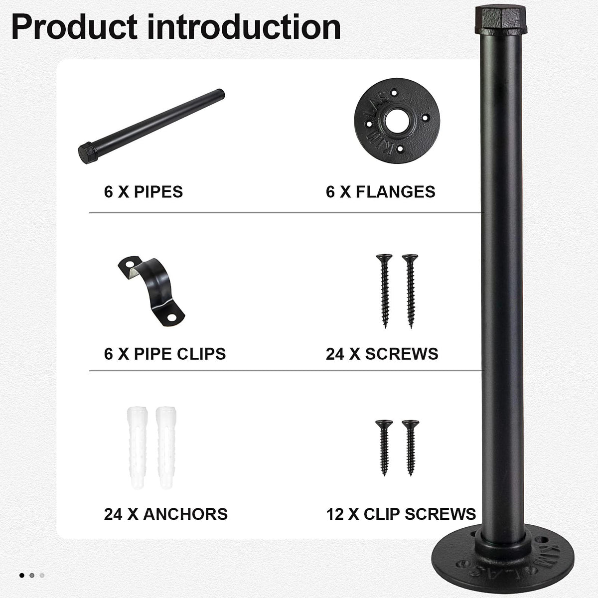 - Q: How many pieces are included in the clothes rack package? A: The package includes 6 clothes hanging rods, along with necessary hardware such as flanges, caps, clips, screws, and wall anchors.
