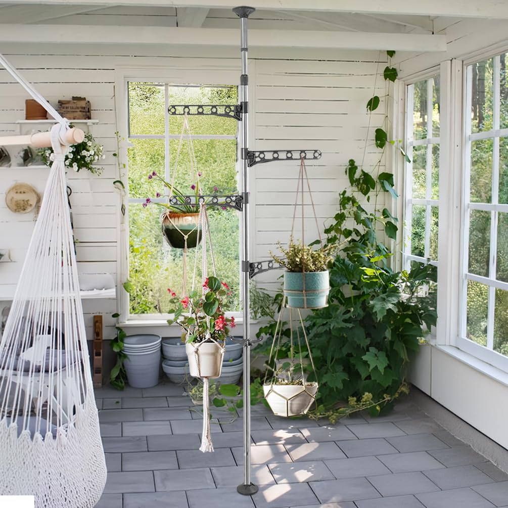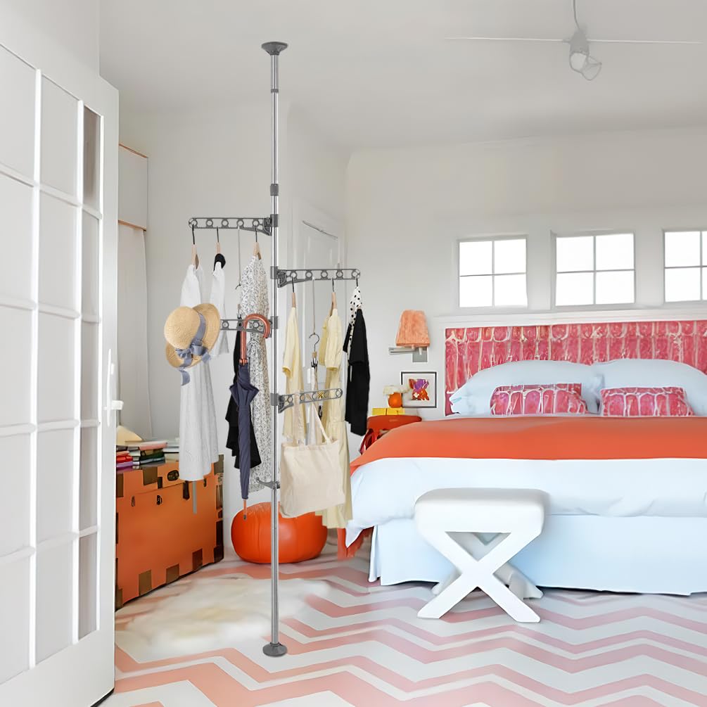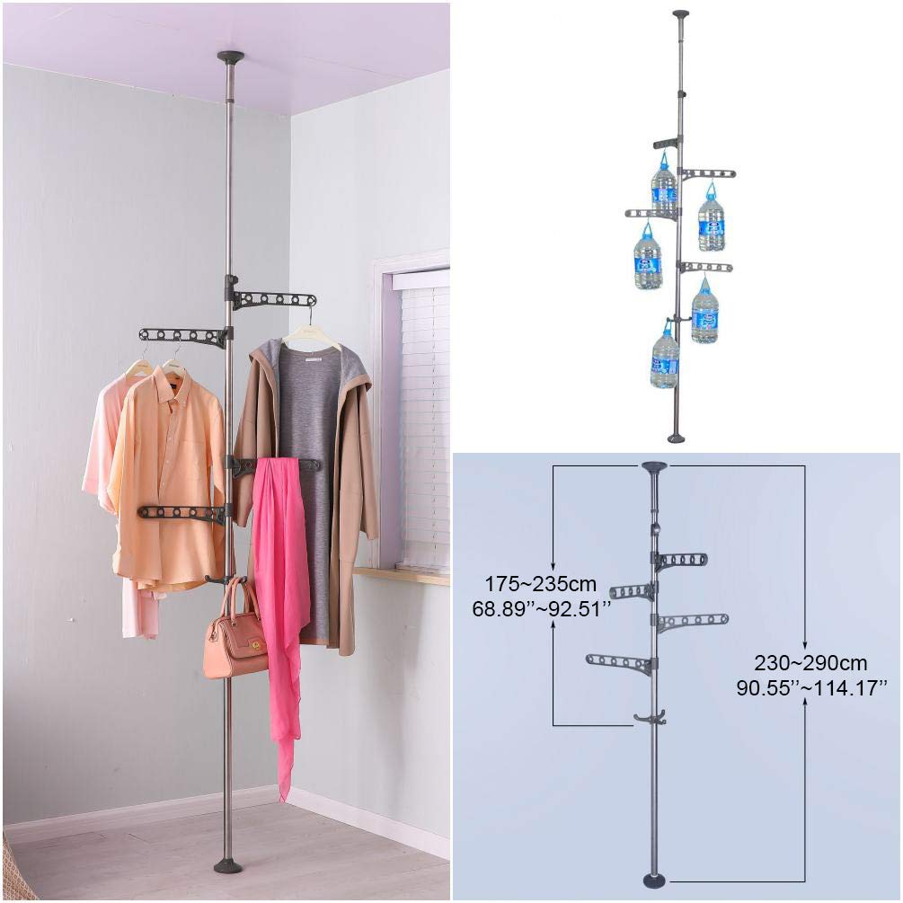 Baoyouni 4-Tier Standing Clothes Laundry Drying Rack Coat Hanger Organizer Floor To Ceiling Adjustable Metal Corner Tension Pole