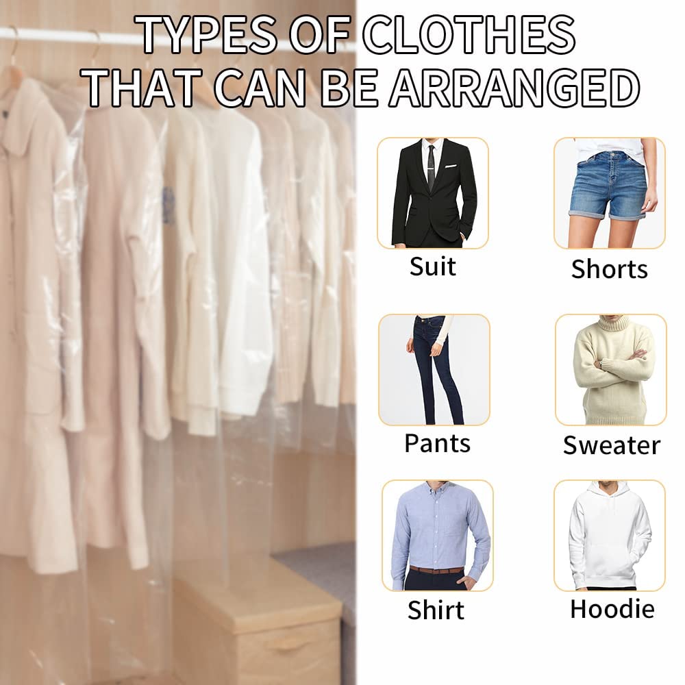 - Q: How many garment bags are included in the package? A: Each package includes 25 clear plastic garment bags.