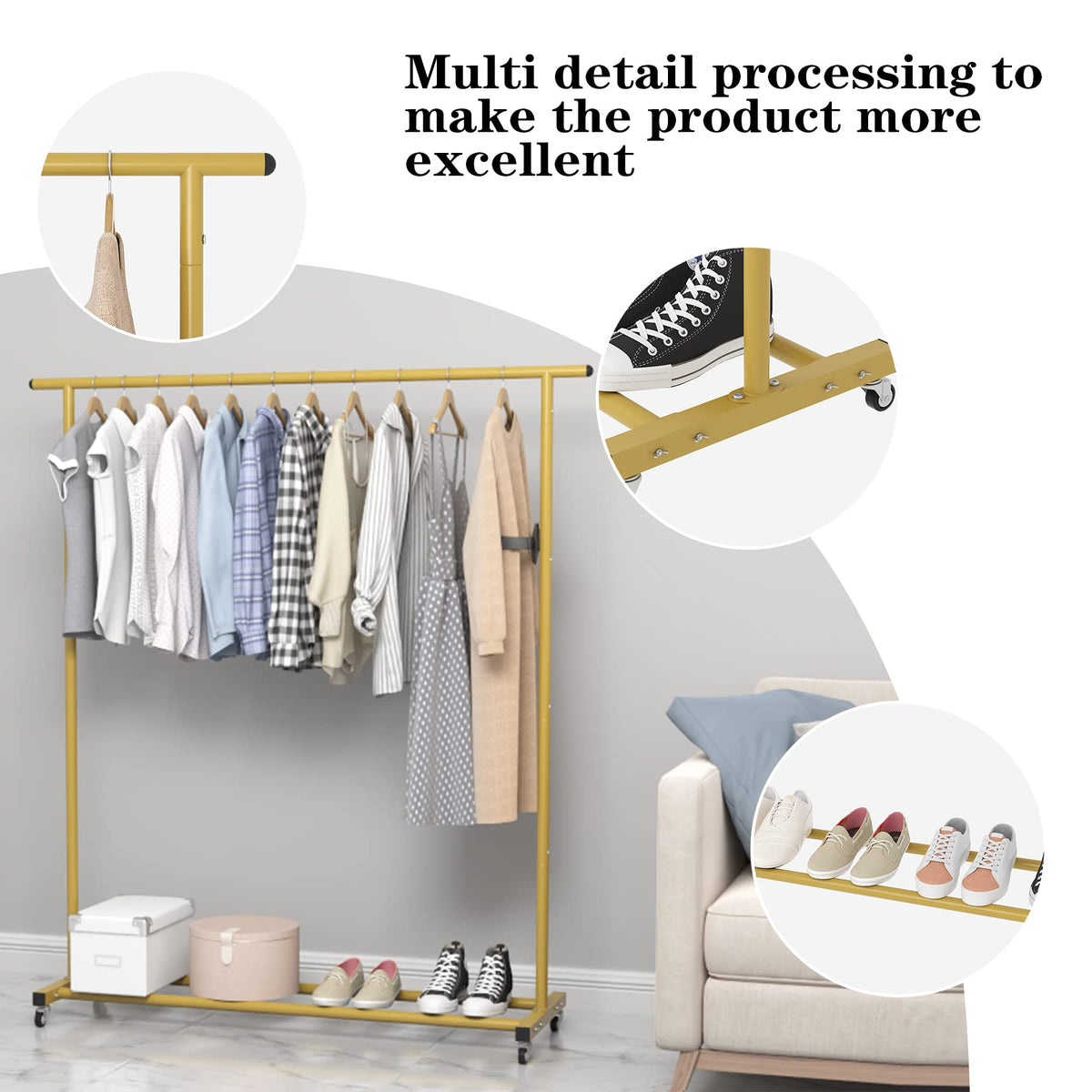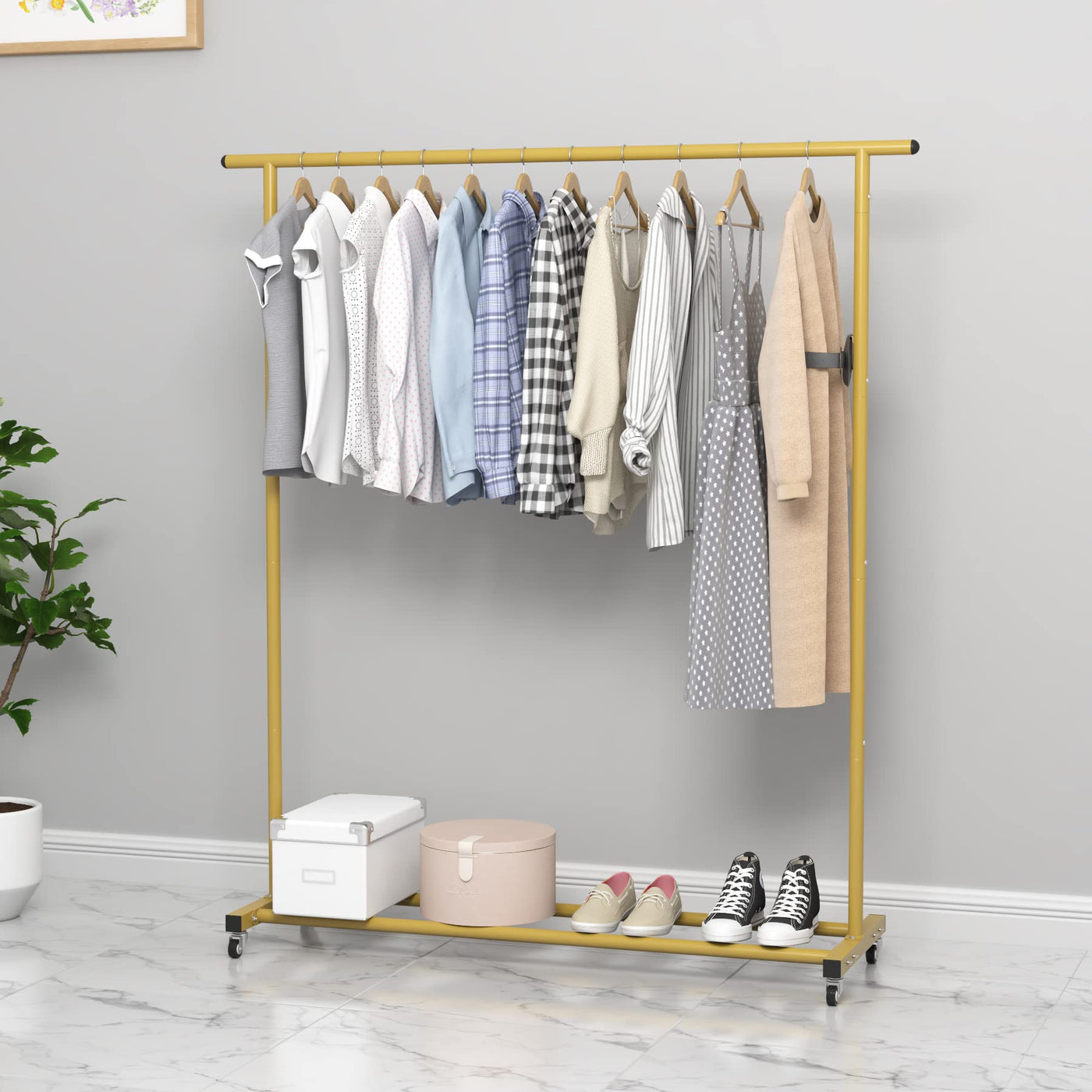 Buzowruil Clothing Clothes Rack Standard Rod Simple Rolling Metal Garment Rack Organizer Hanger With Wheels,Gold