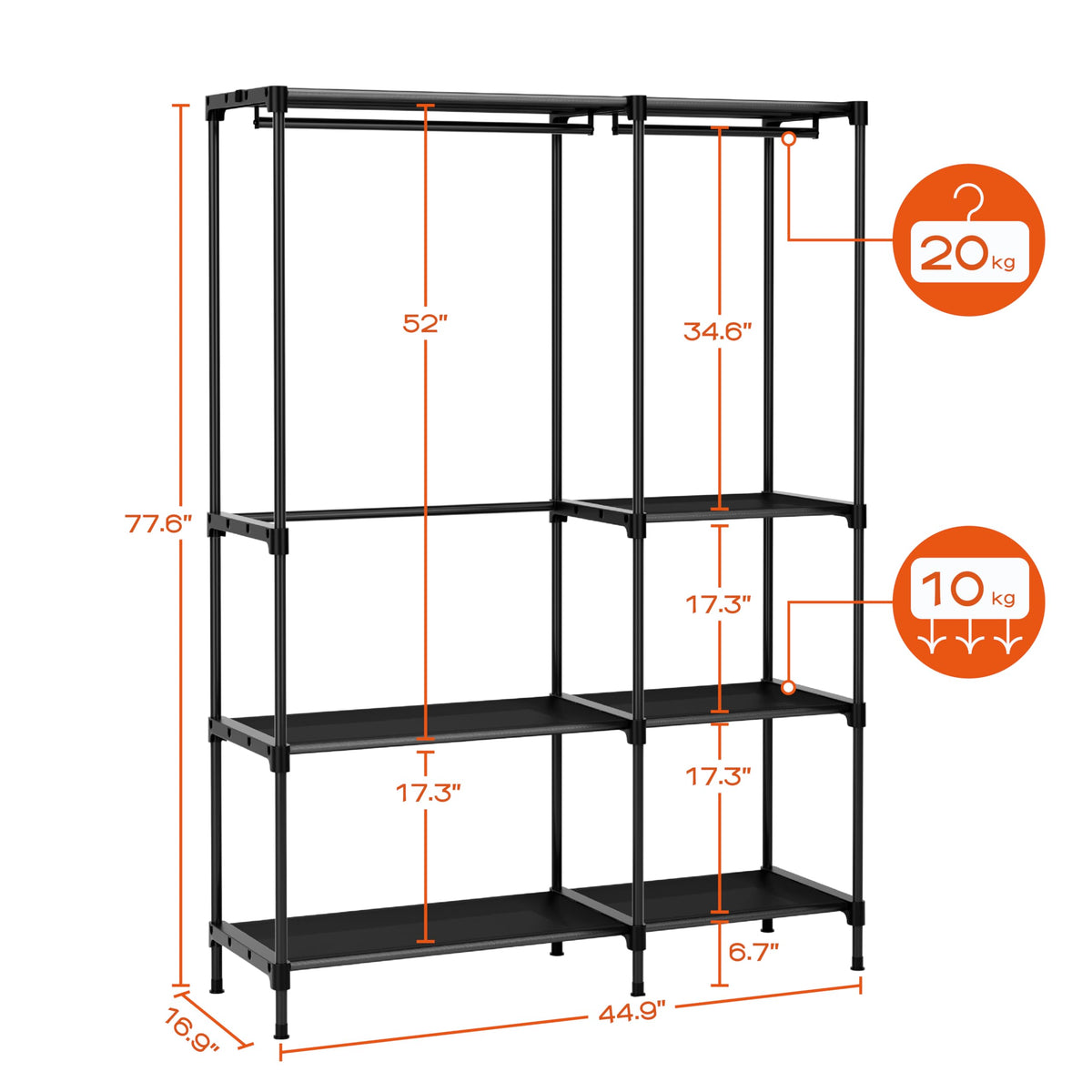 Casamaya Clothes Rack, Portable Closet, 44.9 Inch Large Capacity Wardrobe Closet, Clothes Storage Organizer With Shelves And 2 H
