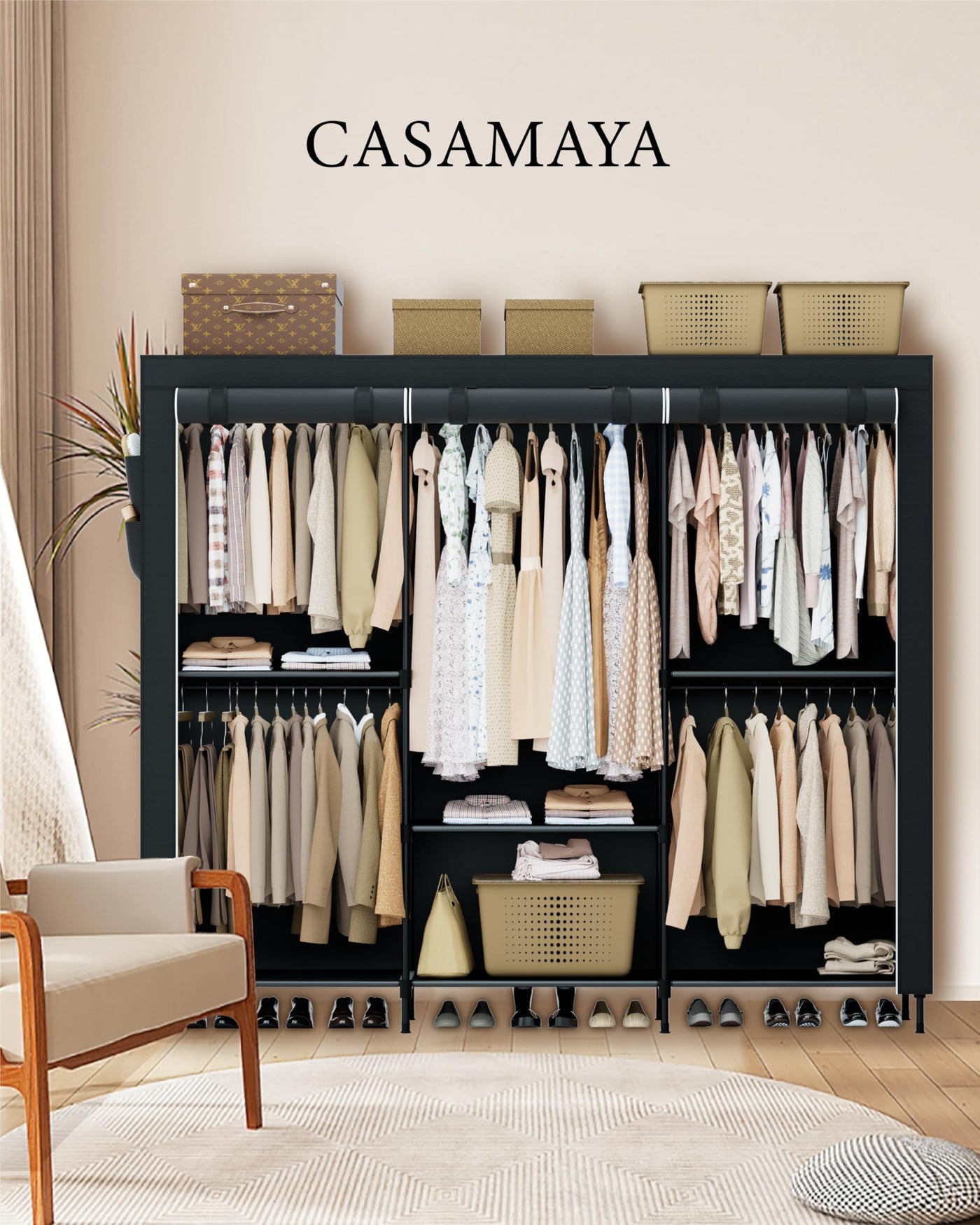Casamaya Portable Closet, 81.5 Inch Extra Large Capacity Wardrobe Closet With Cover, Clothes Storage Organizer With Shelves And