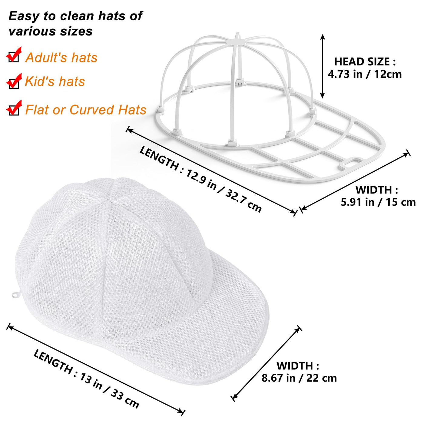 • Q: How does the Coopache Hat Washer Cage work? A: The Coopache Hat Washer Cage is designed to hold baseball caps securely while they are washed in the washing machine. You simply install the cap onto the frame, place it in the included mesh bag, zip it up, and wash it at a slow speed.
