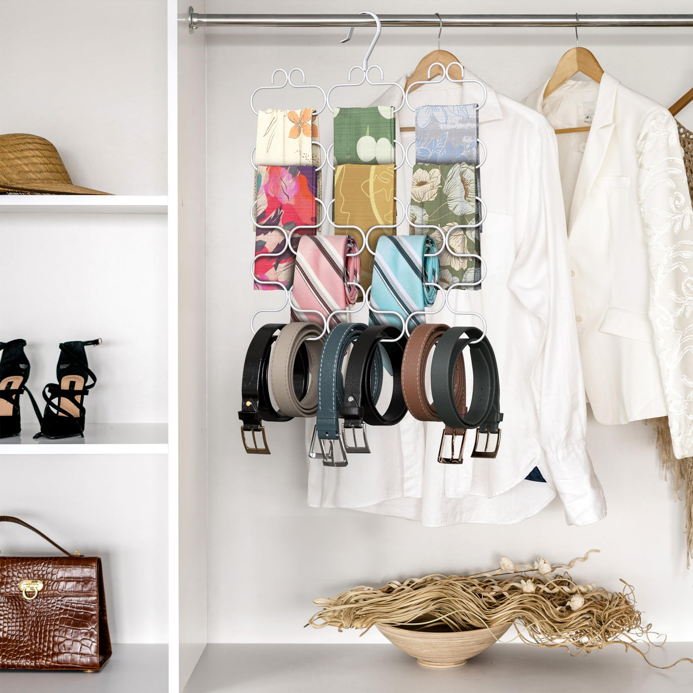 • Q: Can I easily view and access my items with this hanger? A: Yes, the design allows you to store items neatly, making it easy to view and reach your scarves, belts, and ties.