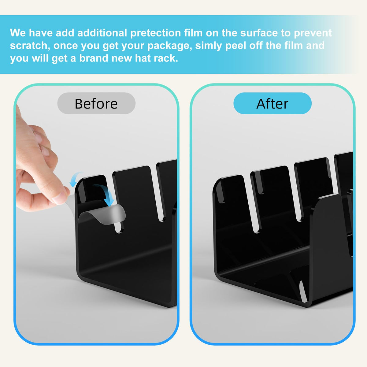 - Q: How do I clean the acrylic surface of the hat organizer? A: To clean the acrylic surface, use a soft, damp cloth with mild soap. Avoid abrasive cleaners that could scratch the surface.
