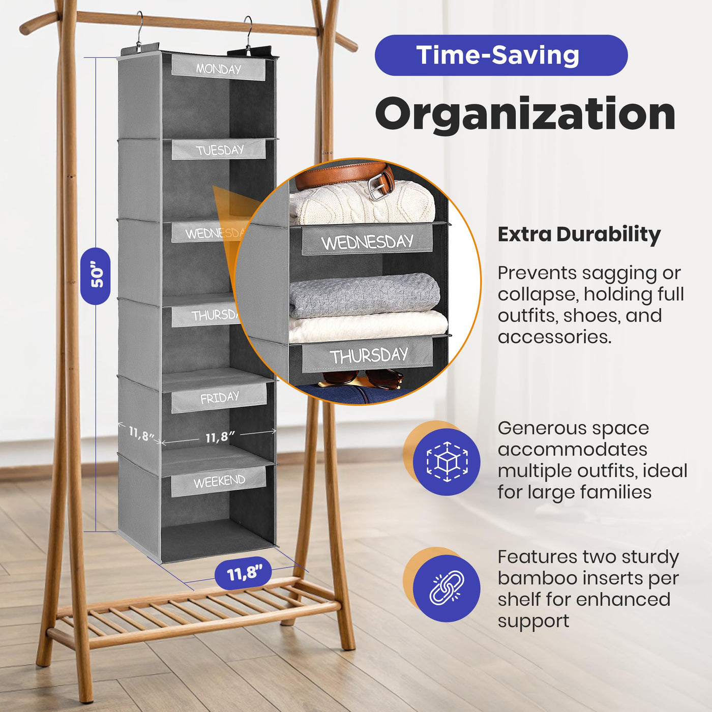 - Q: Is the Daily Activity Organizer suitable for small spaces? A: Yes, with its compact design of eleven inches by eleven inches, it's suitable for smaller closets and spaces.