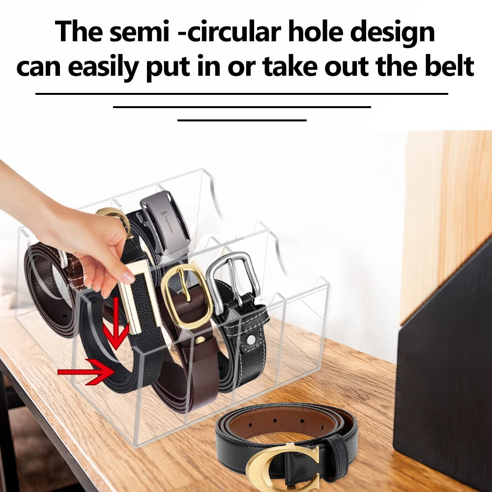 Hlimior Belt Organizer, Acrylic 8 Compartments Belt Container Storage Holder, Acrylic Belt Display Storage Box, Clear Belt Displ