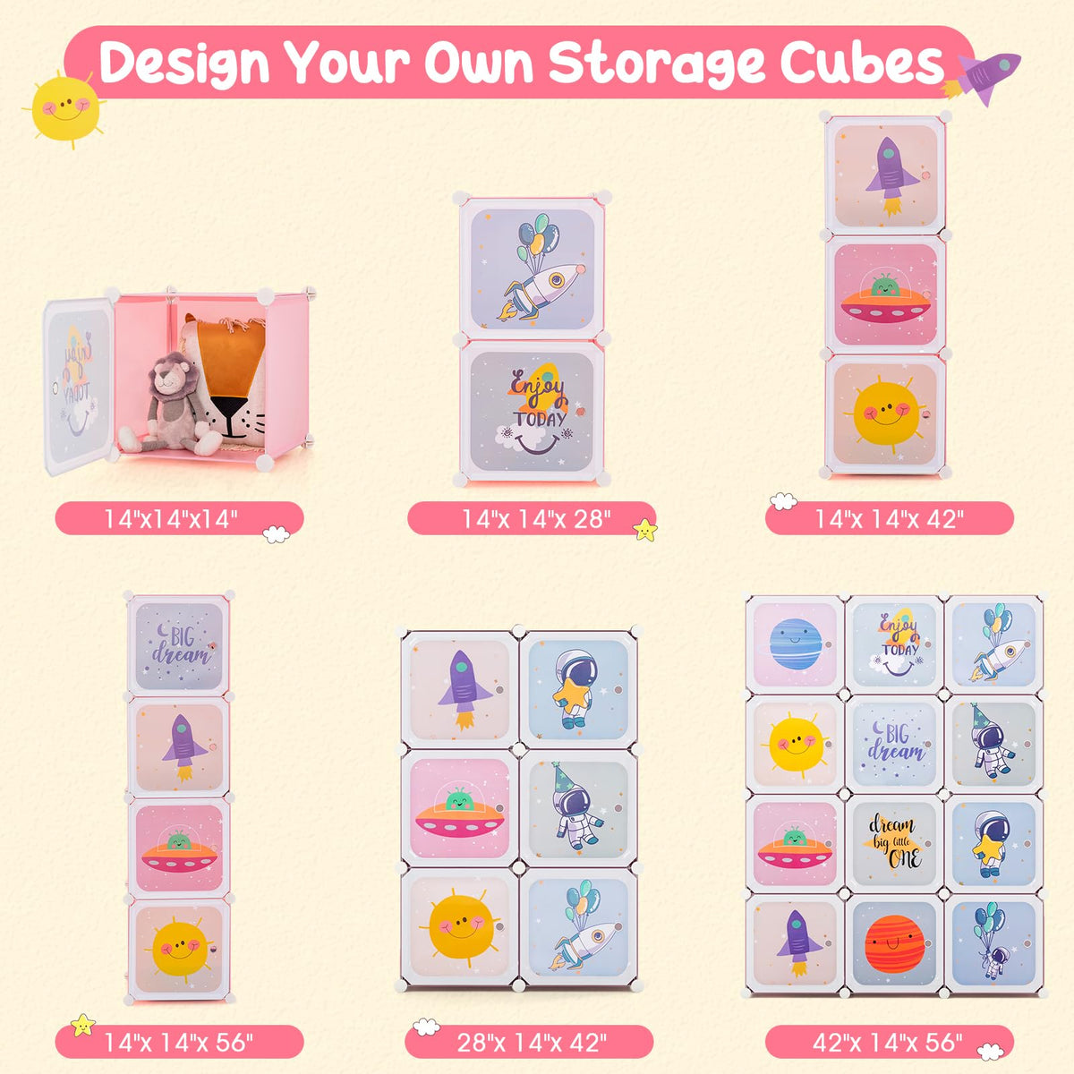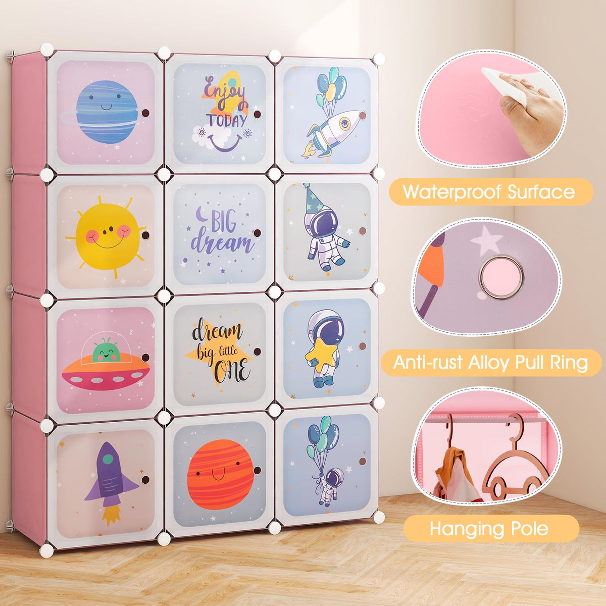Infans Children Wardrobe, Kid Closet Portable Baby Dresser Cute For Kids Bedroom Nursery Armoire With Doors 12 Cube 2 Hanging Se