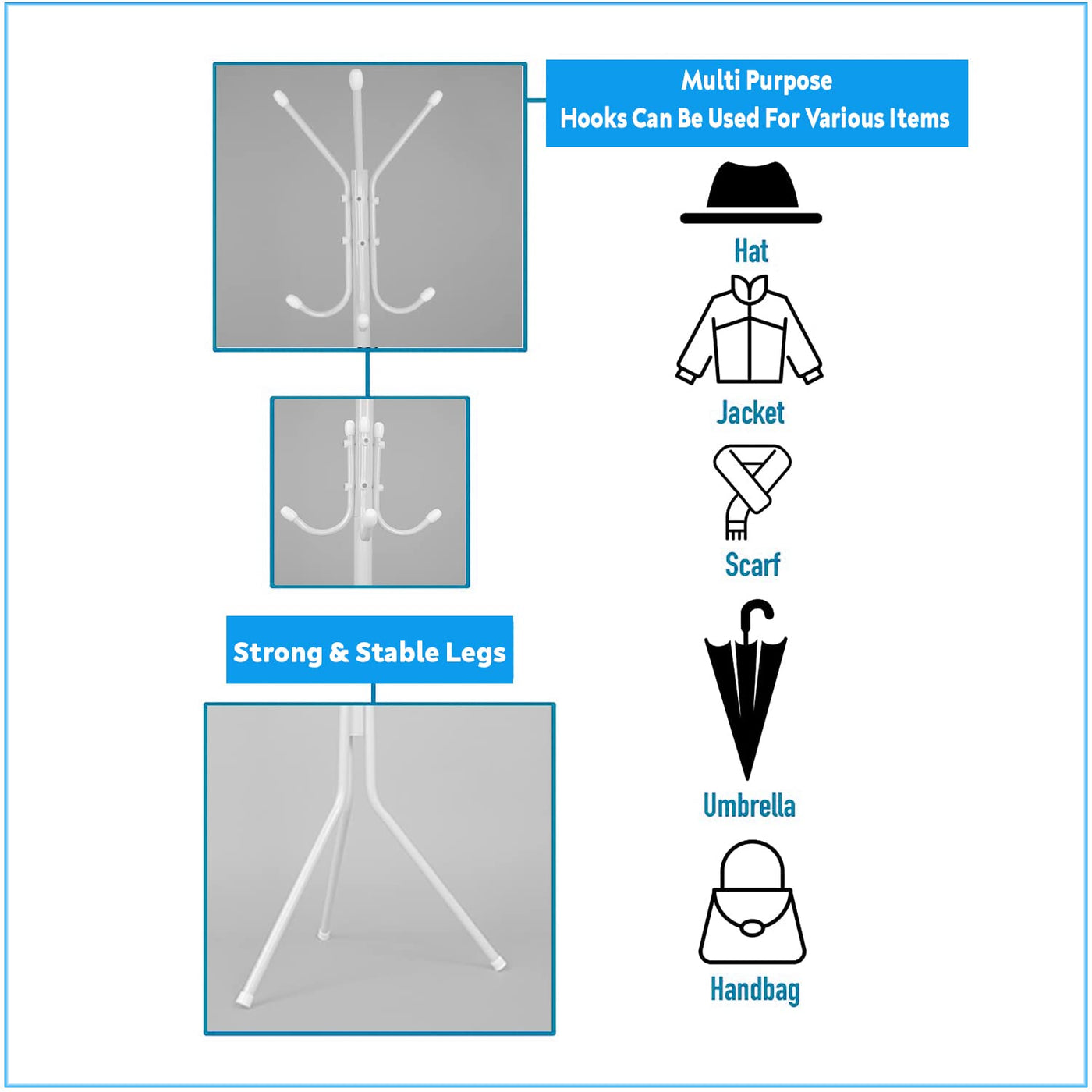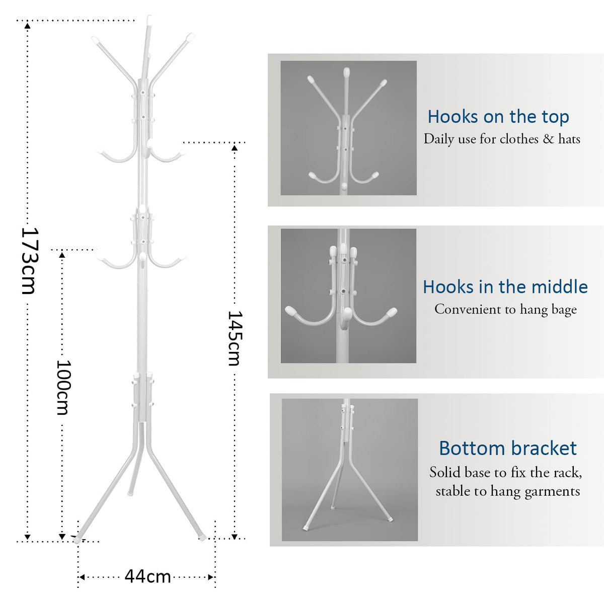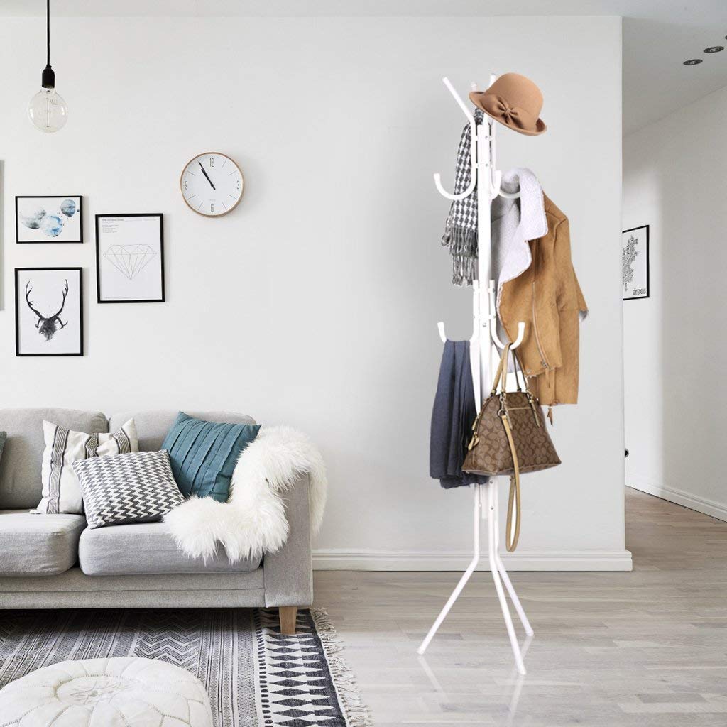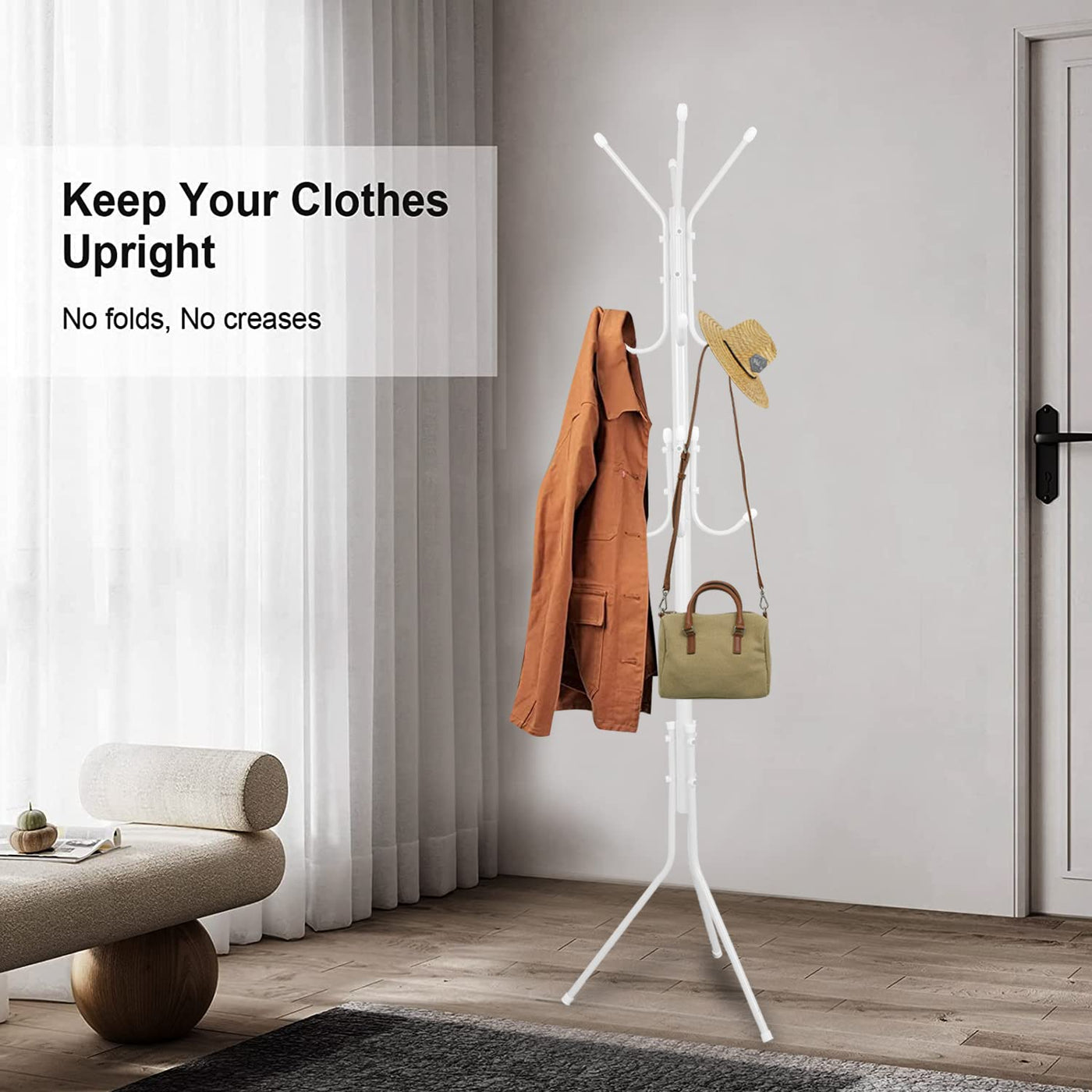 [Sturdy & Durable]: Our Metal Coat Rack Is Designed To Be Light Enough To Be Moved Easily, Which Have 120-Degree Tripod Legs At The Bottom Of The Stand To Hold The Rack Firmly Even Pile On Bags And Winter Jackets.