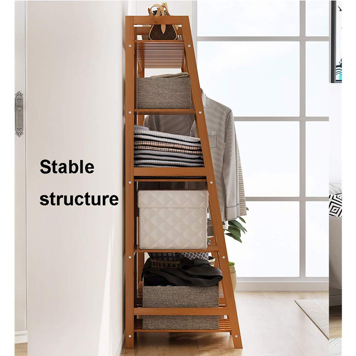 Leopax Bamboo Coat/Clothing/Garment Rack/Freestanding Storage With 5-Tier Shelf (110 X 40 X 140Cm, Natural)