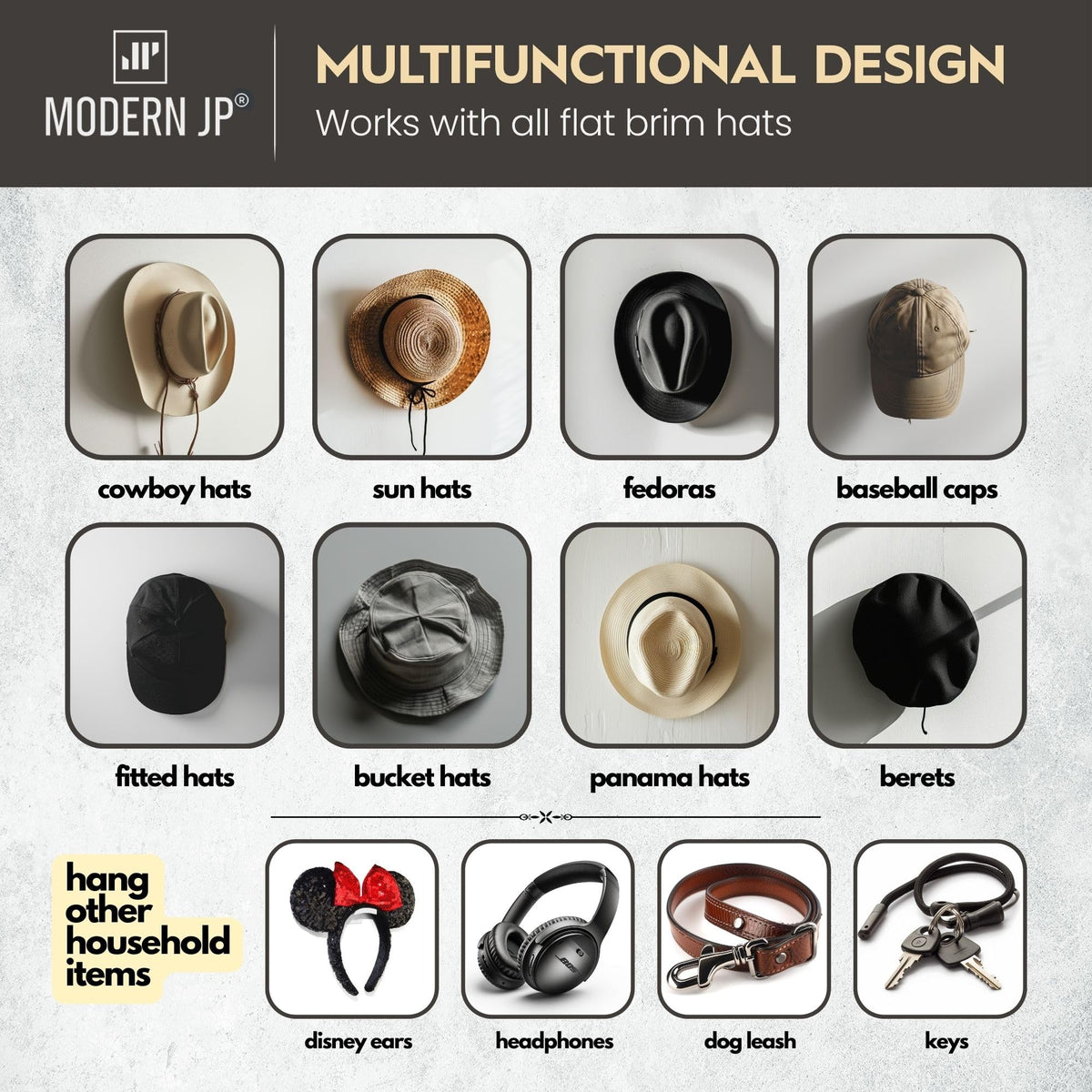 - Q: How many hat hooks are included in a pack? A: Each pack of Modern JP Adhesive Hat Hooks includes six hooks.