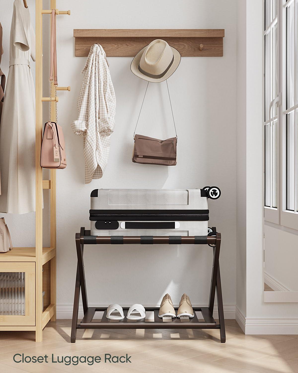 - Q: What additional features does the luggage rack offer? A: In addition to its sturdy design, the luggage rack includes a bottom shelf for extra storage, perfect for shoes or hand luggage.