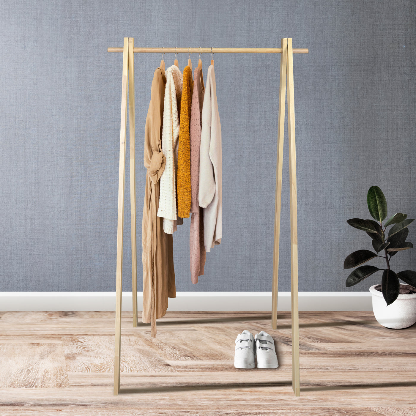 Solid Wood No Tool Assembly Collapsible Aesthetic Clothing Garment Rack