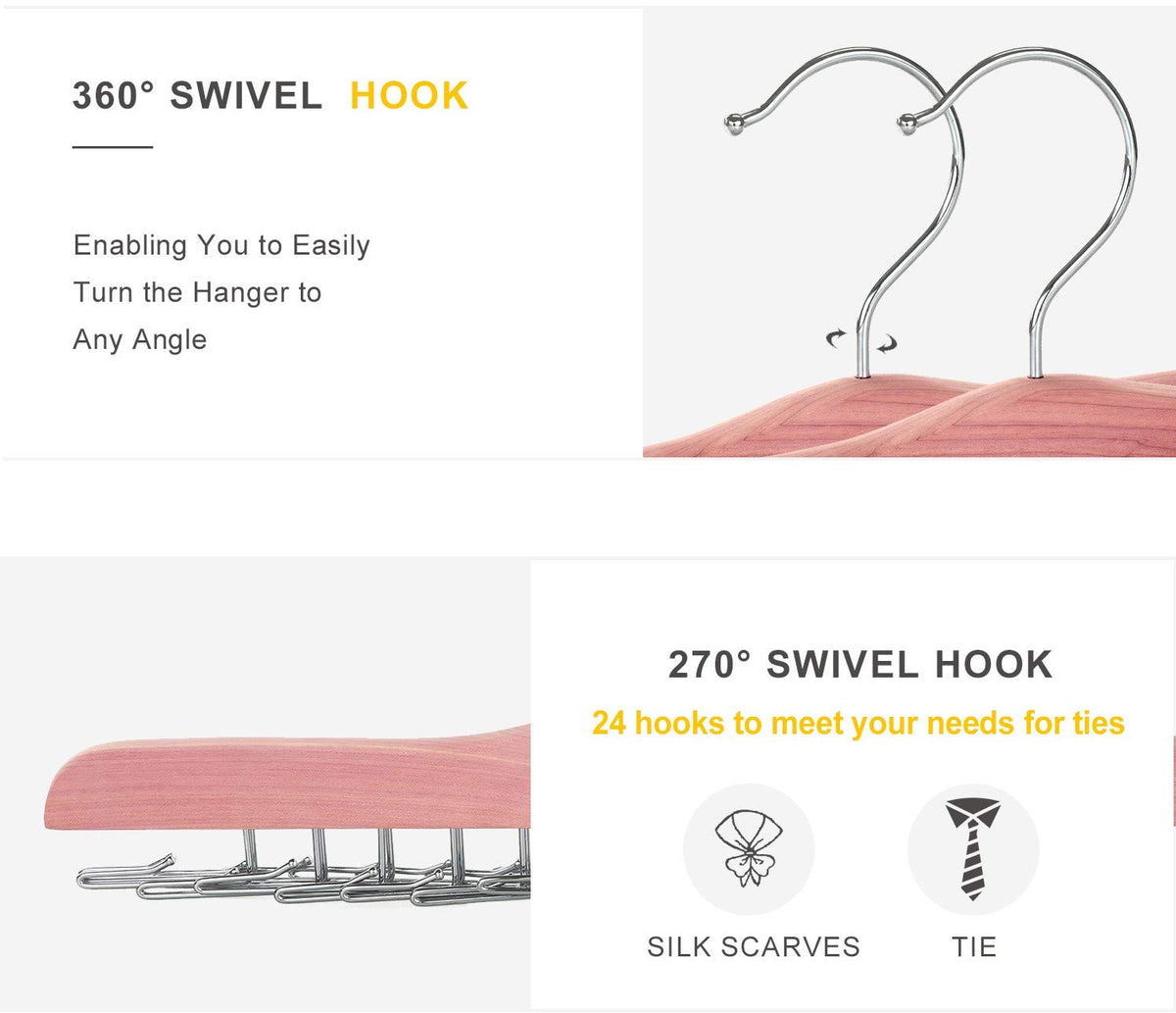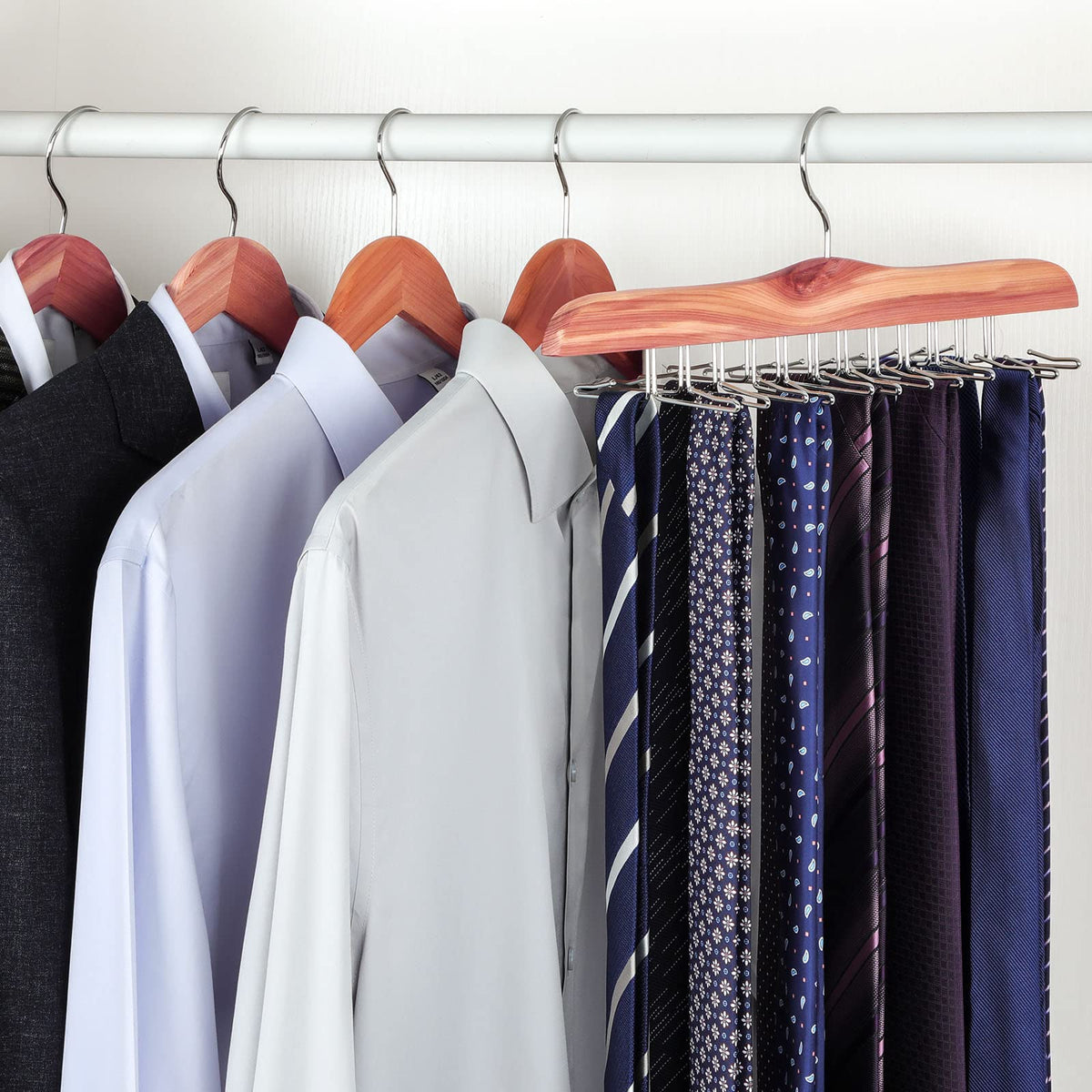 Topia Hanger American Red Cedar Wooden Tie Racks For Closet, 24 Tie Hangers Organizer, High-Grade Space Saving Necktie Holder Fo