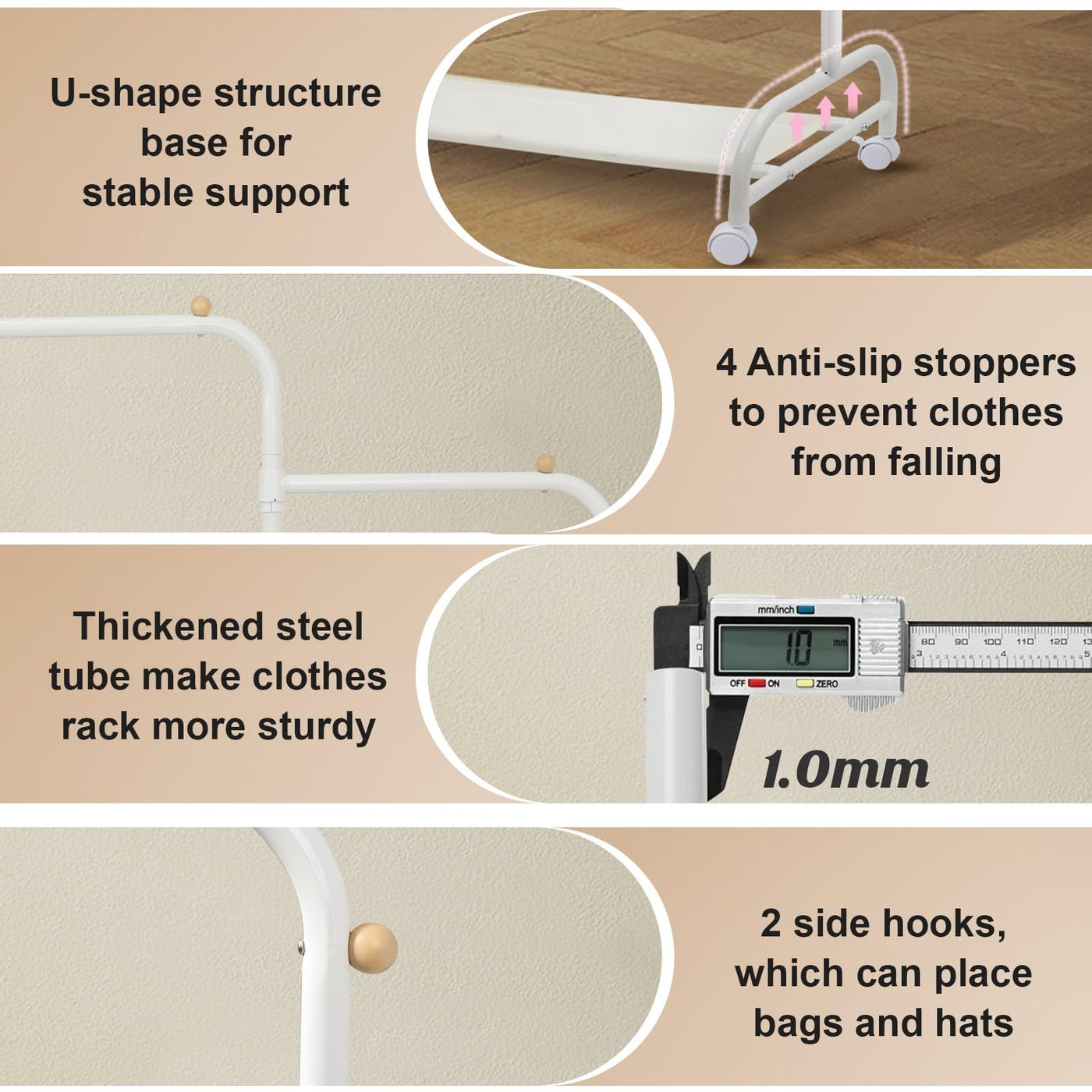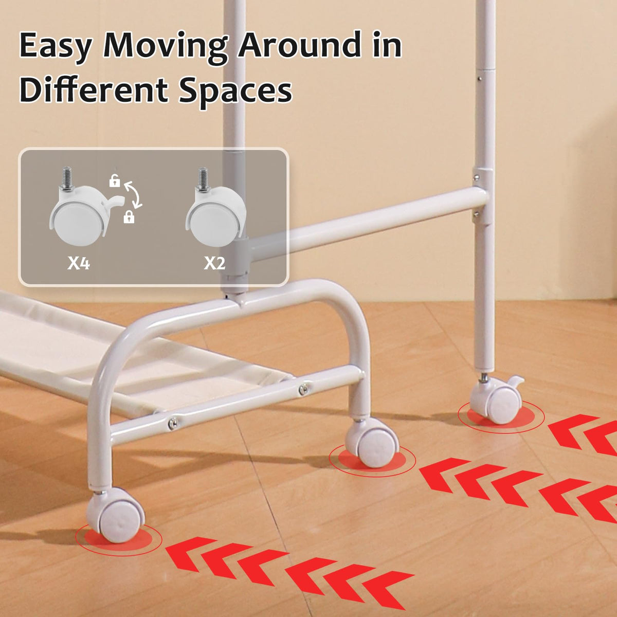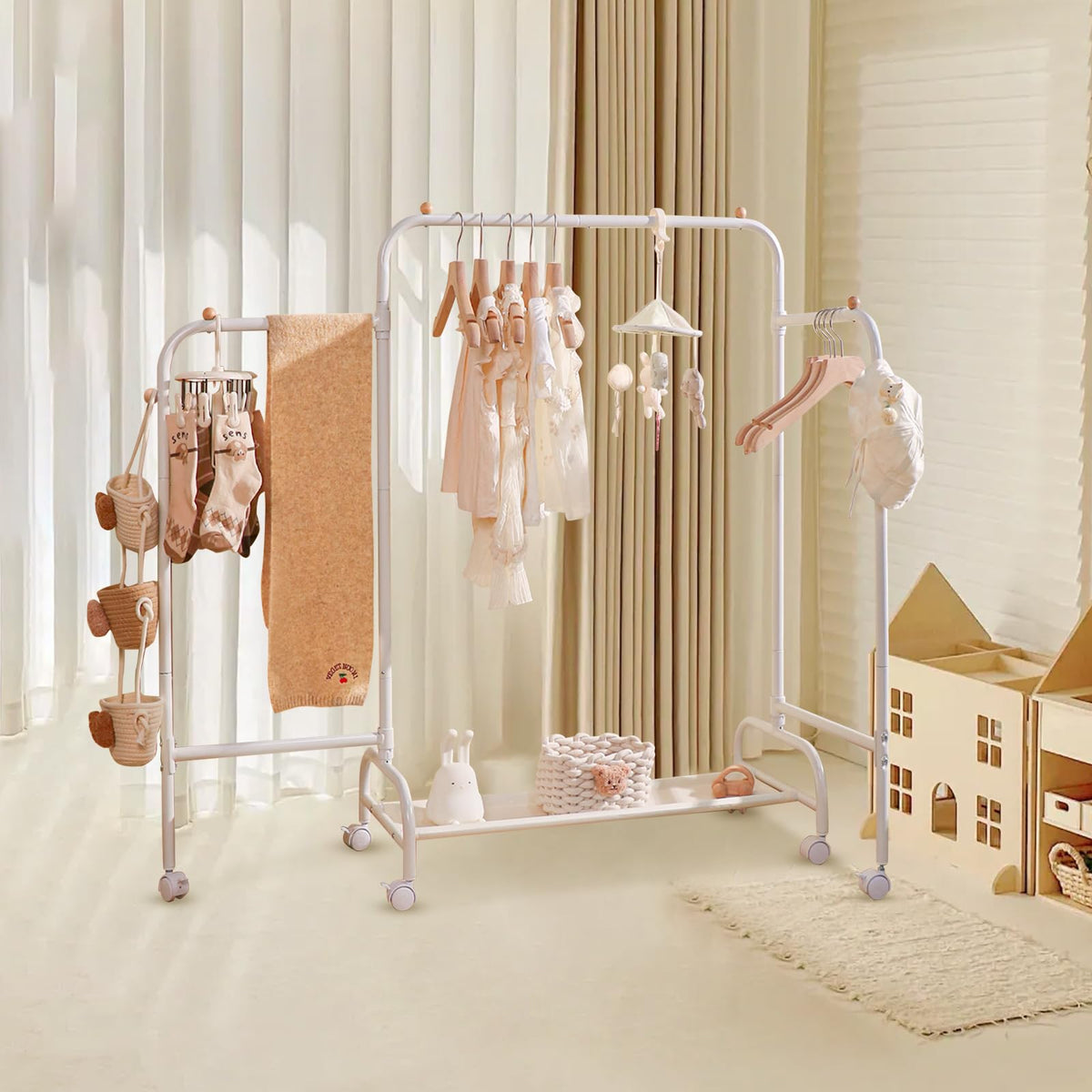 YGJT Multifunctional Kids Clothing Rack, Baby Garment Rack for Hanging Clothes with Wheels and Bottom Storage Shelf, Small Cloth