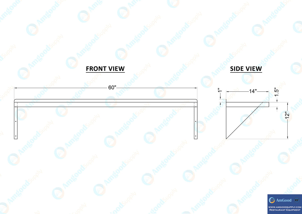 Amgood 14'' Width X 60'' Length | Stainless Steel Wall Shelf | Square Edge | Metal Shelving | Heavy Duty | Commercial Grade | Wa