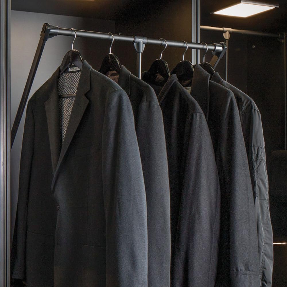 • Q: Is the Hafele Pull Down Closet Rod suitable for heavy garments? A: While the rod can hold up to 26 pounds, it is best suited for lightweight to medium-weight garments.